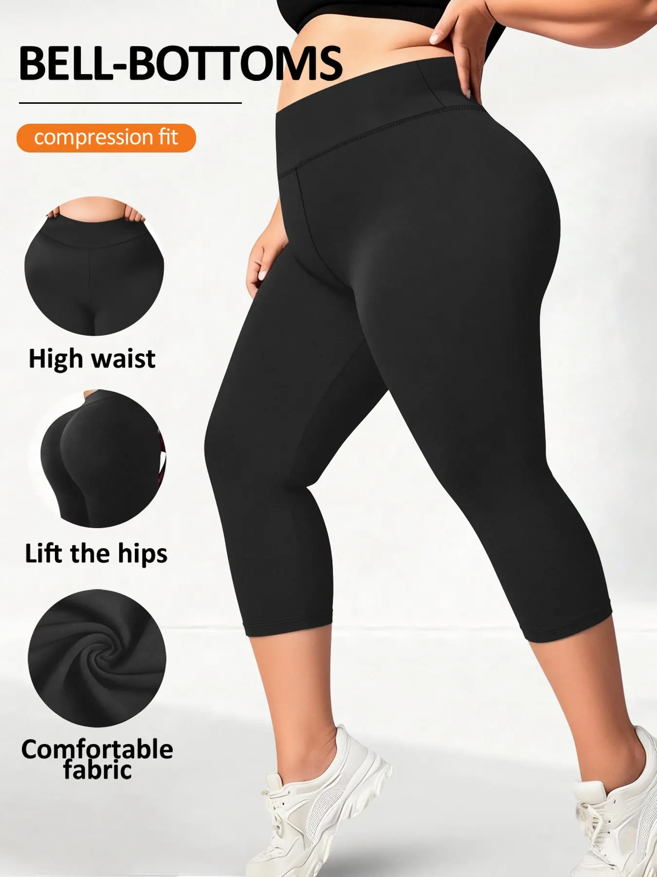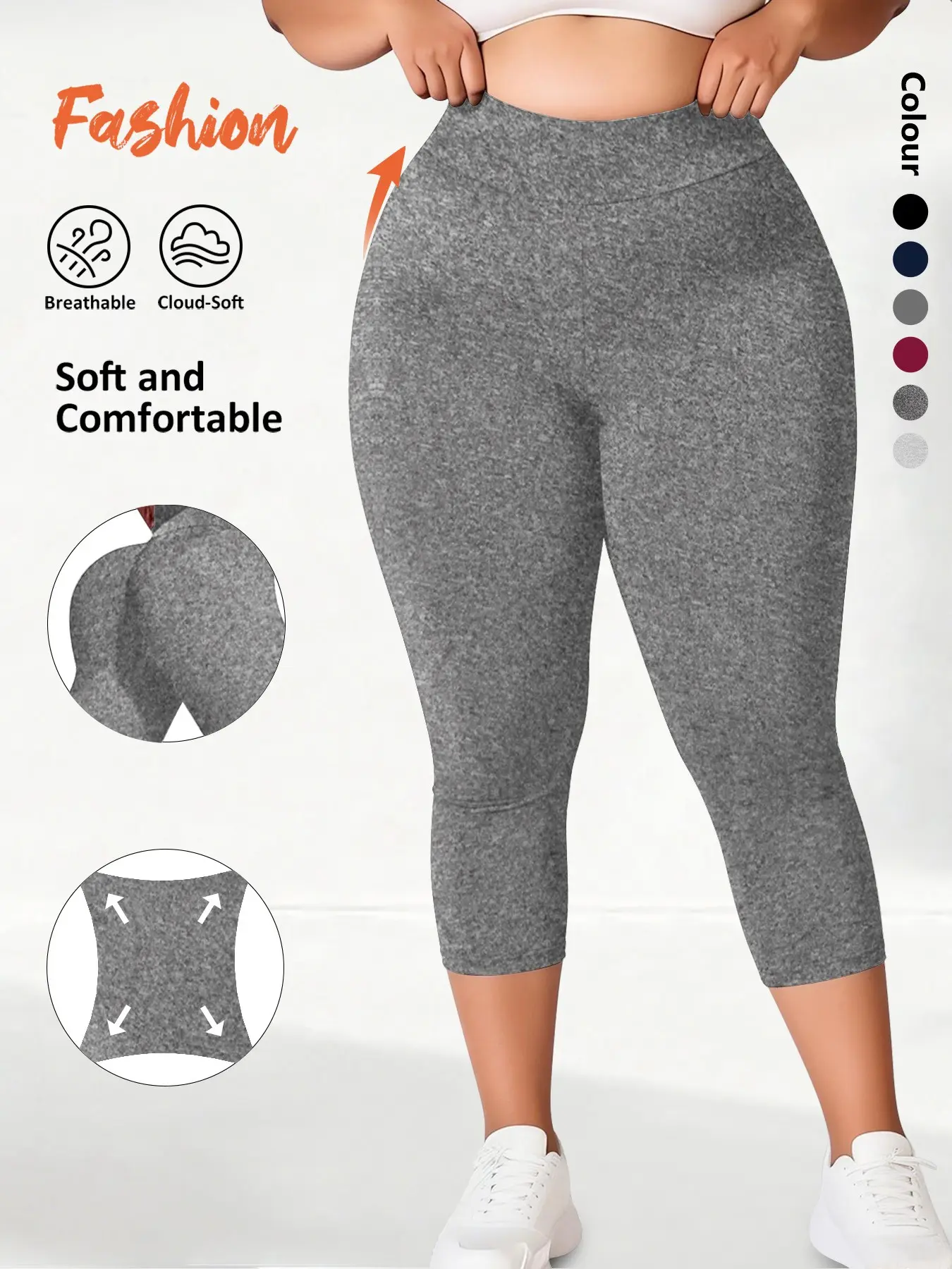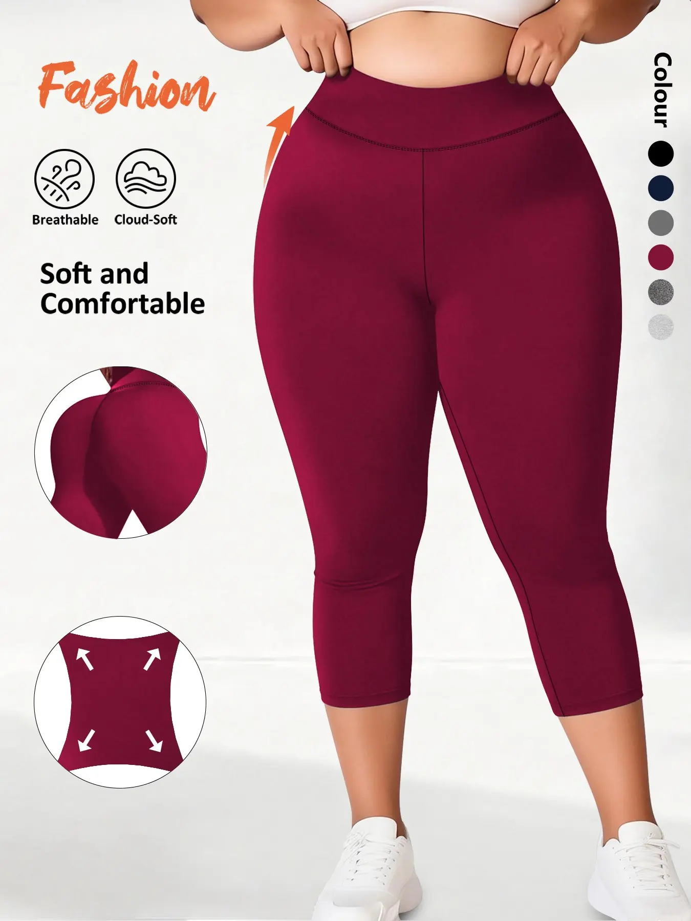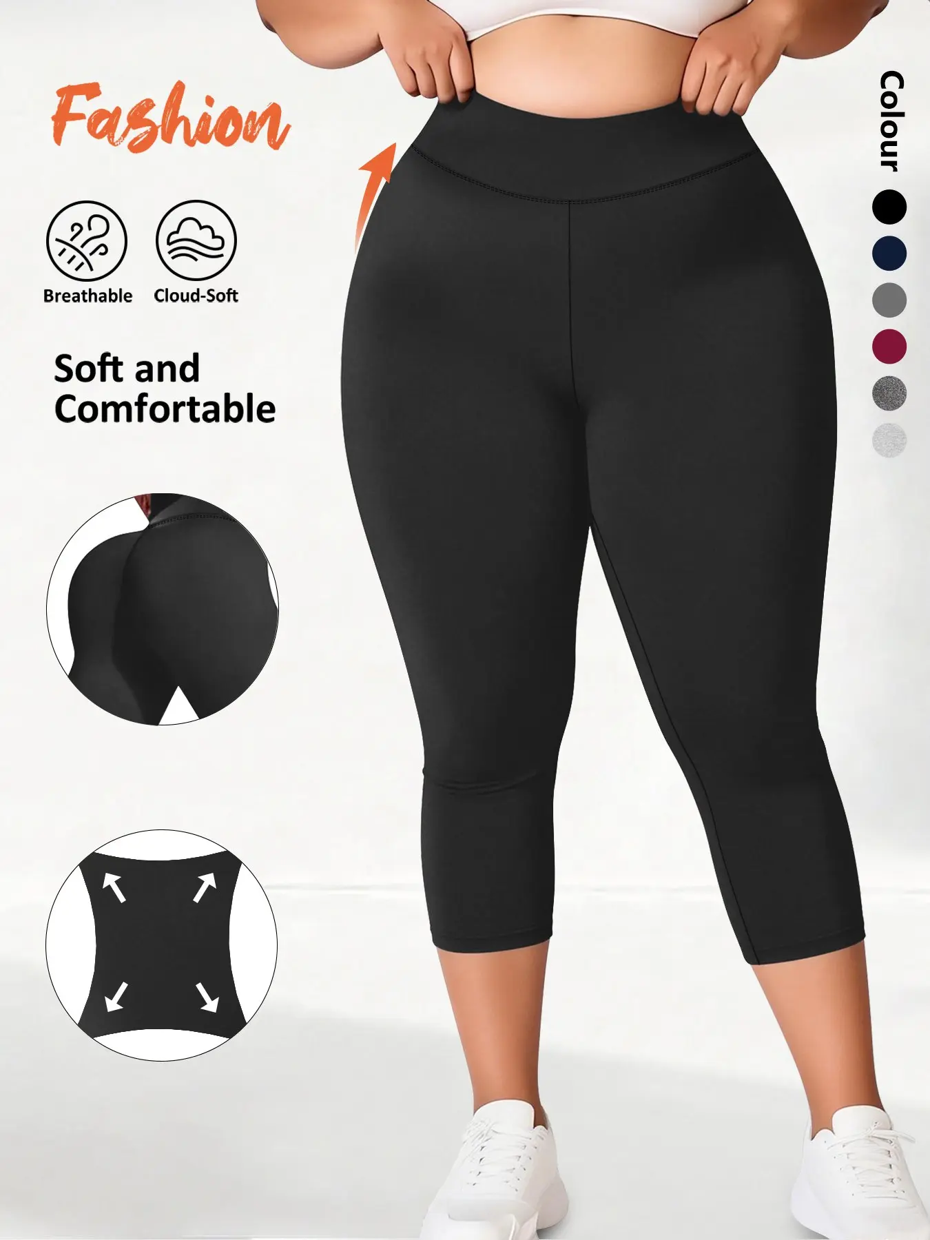 Women's Plus Size High Waist Stretch Capri Leggings, Soft Four-Way Stretch Fabric for Yoga and Everyday Wear, and Available in Multiple Colors, Shaping Leggings