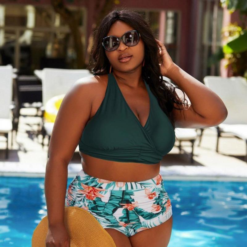 Hanna Nikole Halter V Neck High Waisted Bikini Sets for Women Plus Size