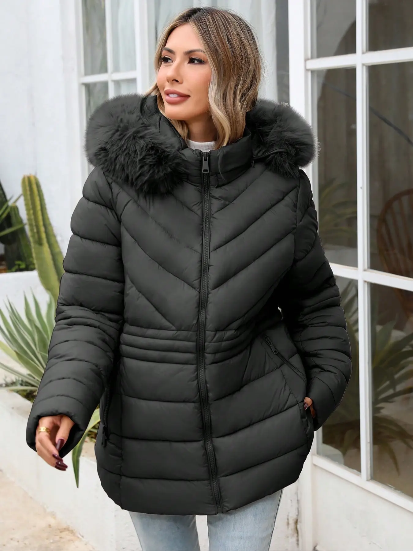 レディース 大きいサイズ 冬用 快適なコットンジャケット、通勤に便利なシンプルなミドル丈フード付き暖かいコート、長袖のフィット感スタイル #メンズコーディネート #レディーススーツ #トレンチコート #clothing #中年・高齢者向け冬用帽子 #抜け毛対策 #レディースアパレル #ベビーパジャマ #秋の推しコスメ #マタニティファッション