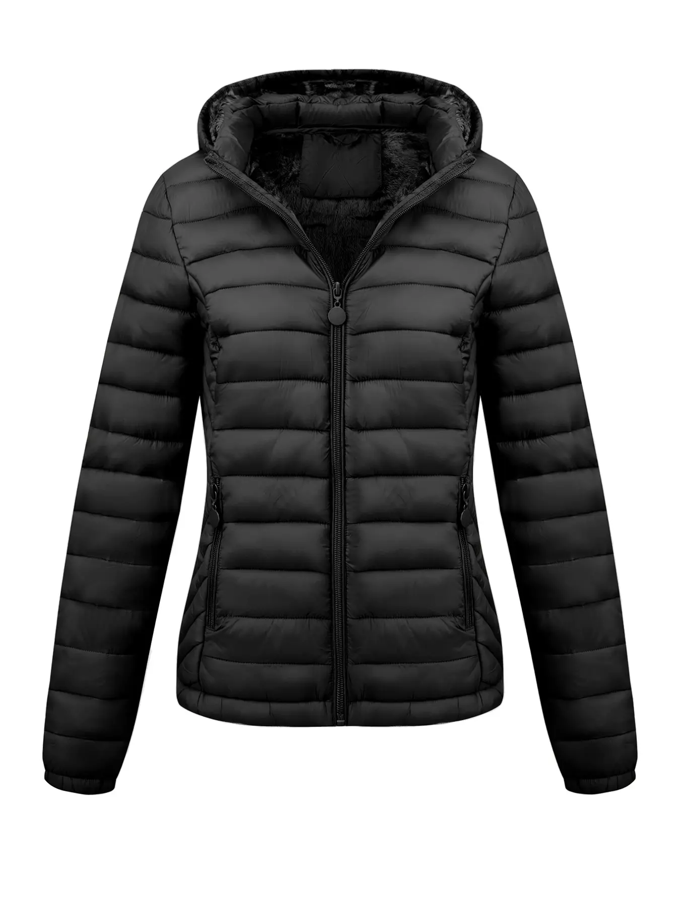 Women's Plus Size Winter Puffer Jacket, Hooded Long Sleeve Woven Fabric, Casual Fitted Plain Design, Daily Commute Outerwear #fleecelinedtightsforblackwomen #denimjacket #jeanjacket #womenssweats #oldnavyplussize #northfacepuffer #doublezipperjacket #pulloverhoodie #plussizeflannel #plussizefashioninspo
