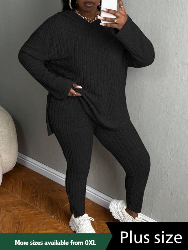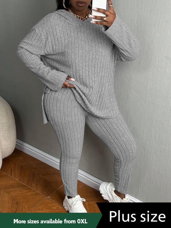 ✨ Elevate your casual wardrobe with this textured ribbed hoodie and elastic waist pants set. Perfect for fall and winter, it offers both comfort and style. The drop shoulder design adds a modern flair. 🧥