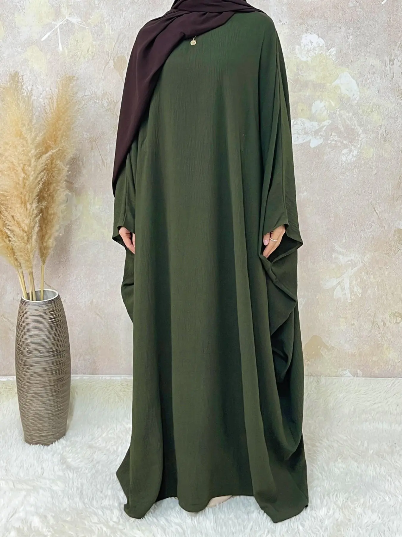 Absolutely adore this abaya! Great fit and material. Inner ties give a more tailored look. It’s grab-and-go—no ironing needed! Unlike others I own, it doesn’t wrinkle throughout the day. For reference, I’m 5’7”, 178 lbs, and my hips are 40+ inches.