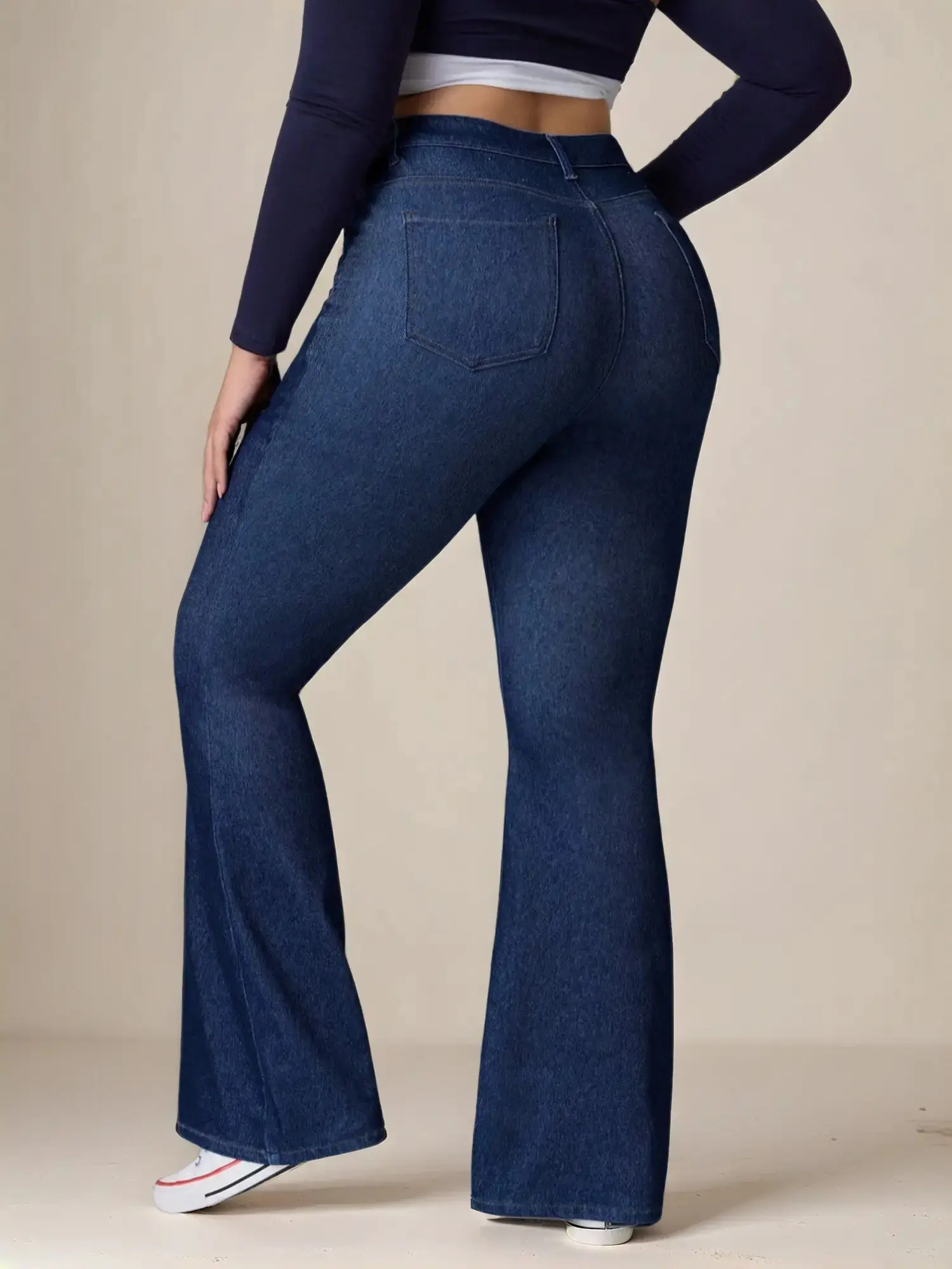 5. 【Plus Size】 Solid Color Flare Leg Jeans, Casual Comfy Denim Jeans for Daily Wear, Women's Bottoms for All Seasons