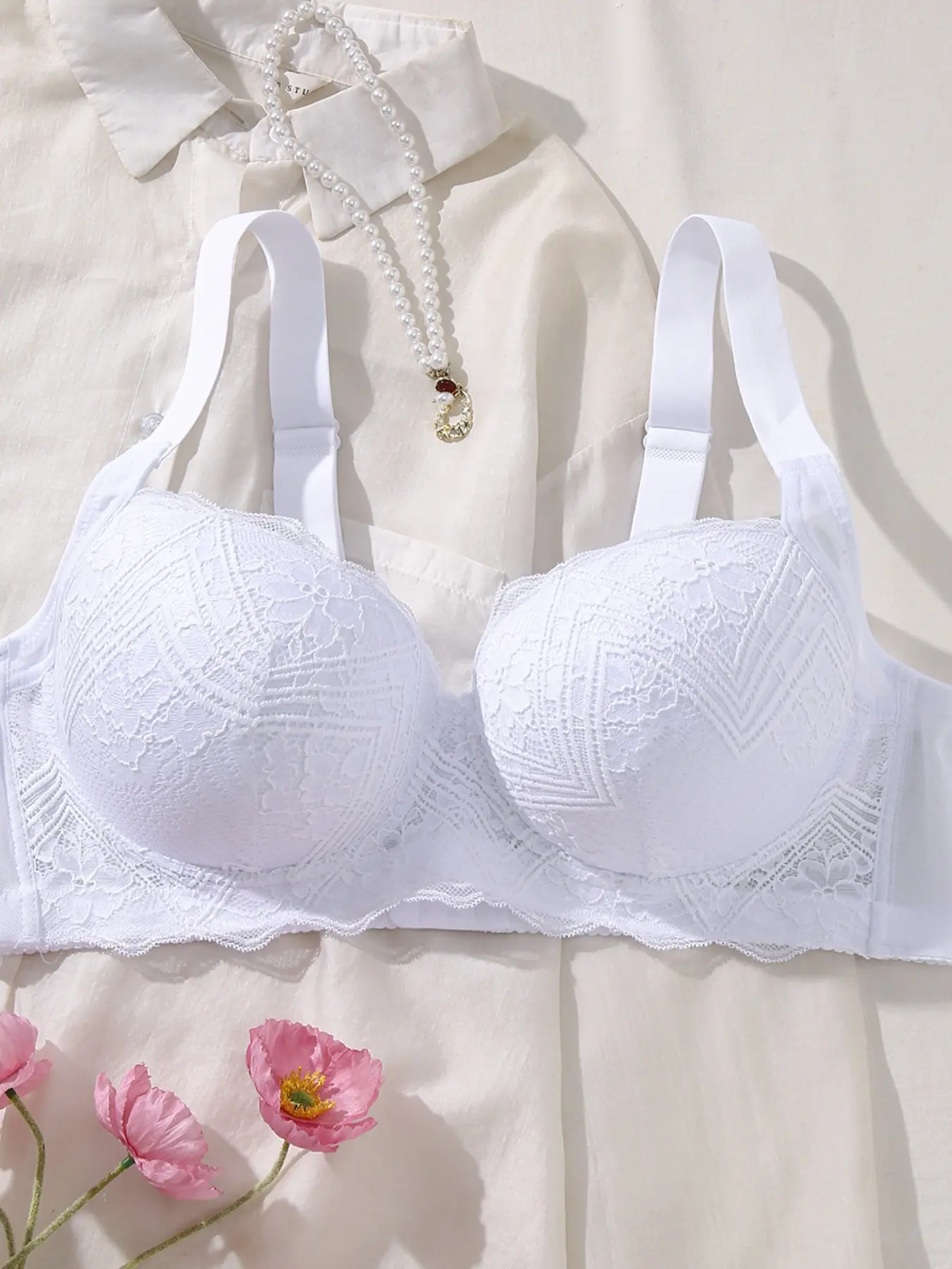 【Plus Size】 Solid Color Underwire Bra, Casual Comfy Breathable Lace Bra for Daily Wear, Women's Plus Size Lingerie for All Seasons