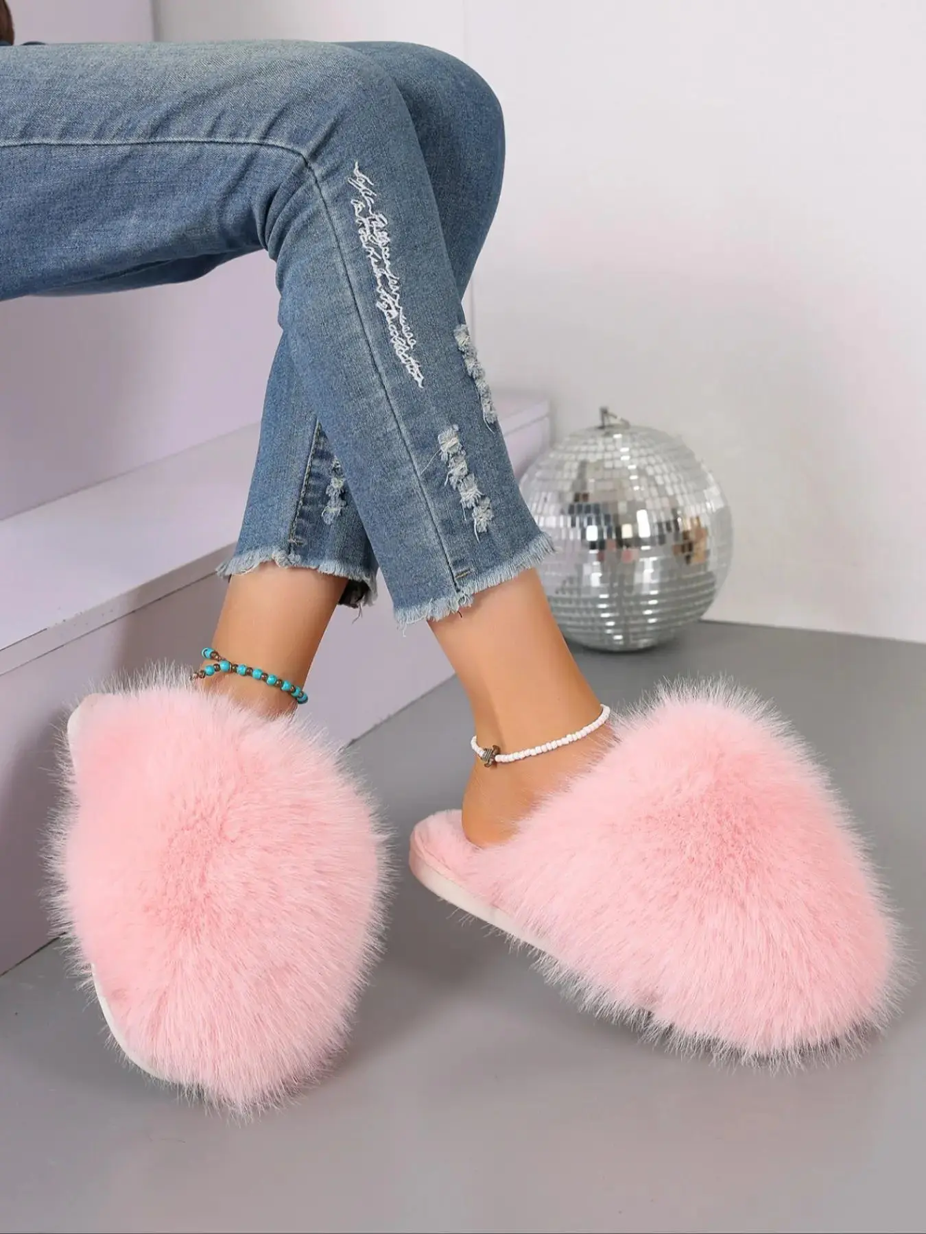 【Chic Appearance】: The fluffy aesthetic enhances home wear with an appealing look, making these slippers a charming addition to your loungewear.