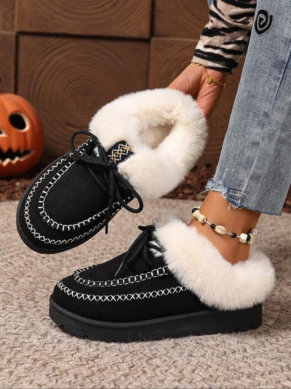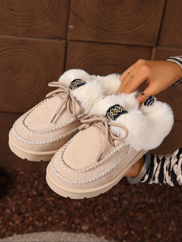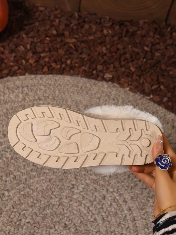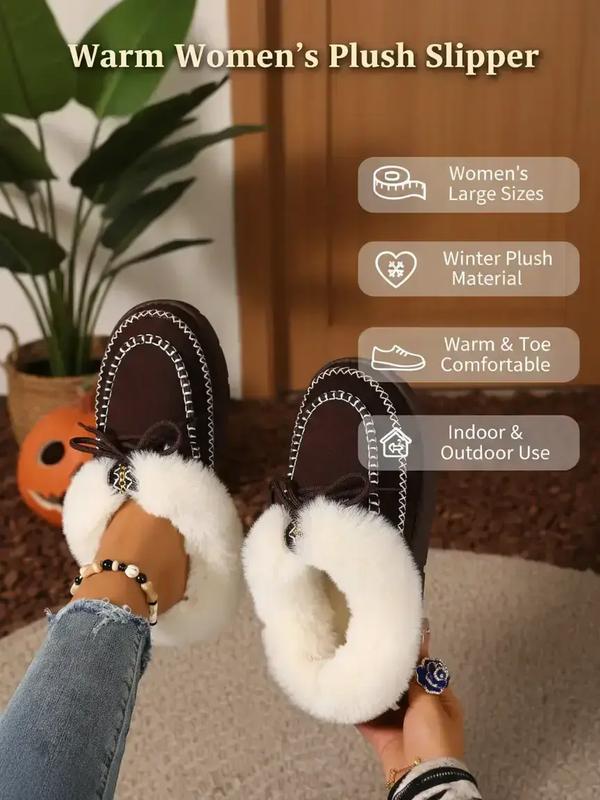 Women's Large Size Winter Plush Slippers, Warm Comfortable Casual Shoes, Round Toe Medium Width Ankle Boots for Home and Outdoor Use