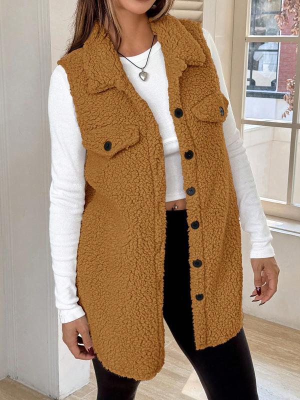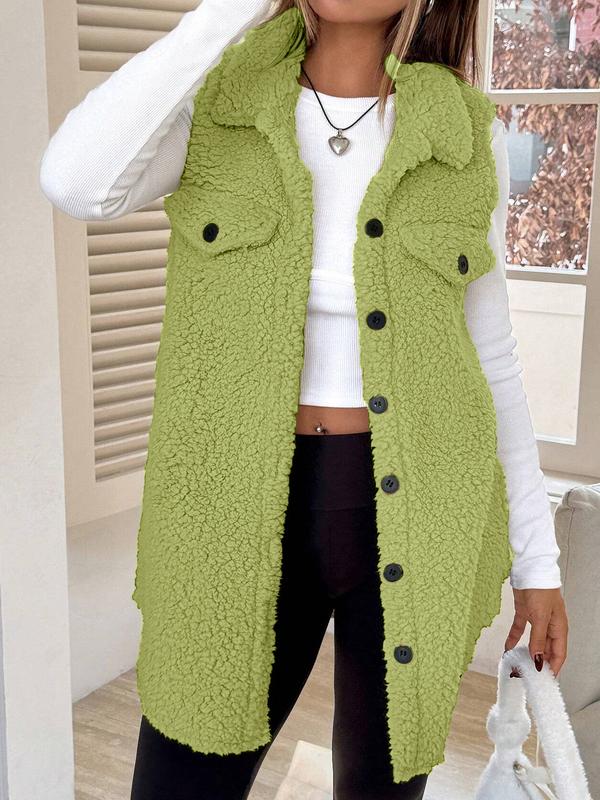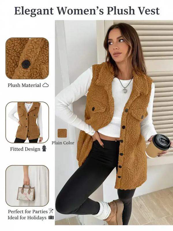 Women's Fall Winter Plush Vest, Elegant Fitted Plain Color Waistcoat, Fashionable Party Holiday Travel, Cute Top, Casual Sleeveless Outerwear #womenwear #sweaterset #winterclothes #outerwear #womenclothes #womensclothes #womenssweats #womentops #fallbootswomen #affordablesweaters