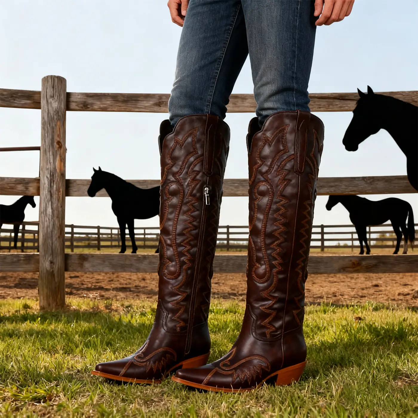 Best boots ever! Feel great and work for wider calves! Almost dupes of the Dan Post boots but not leather bottom or actual Jean. Will be purchasing in another color