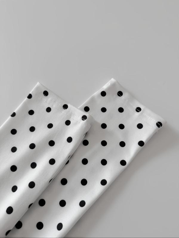 Women Polka Dot Top Long Sleeve Blouse Slim Fit Shirt Stretch Knit Top White Dot Print Top Retro Style Blouse Casual Daily Wear Minimalist Round Neck Tee Soft Cotton Top Elegant Office Wear Classic Dot Pattern Fitted Long Sleeve Top Womenswear
