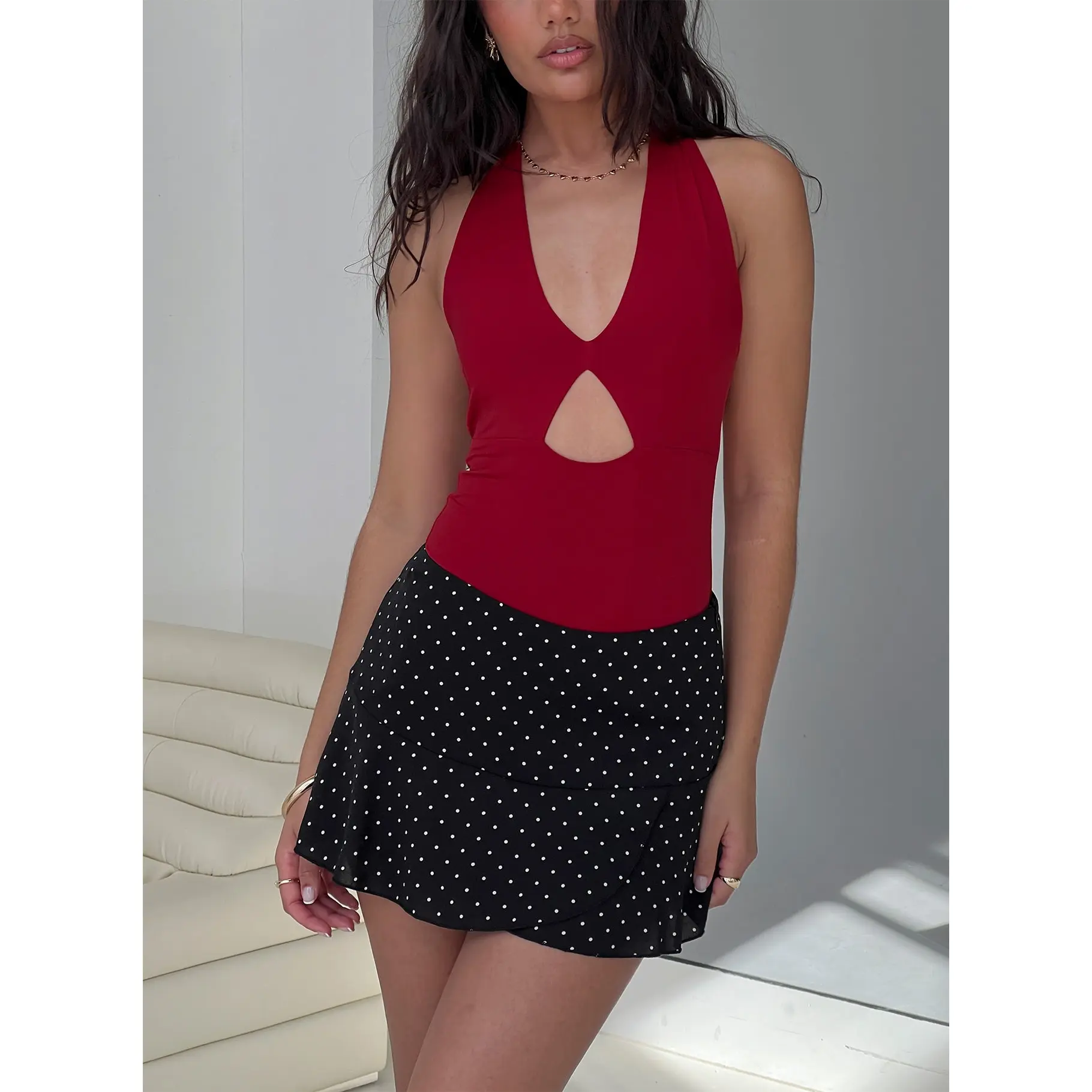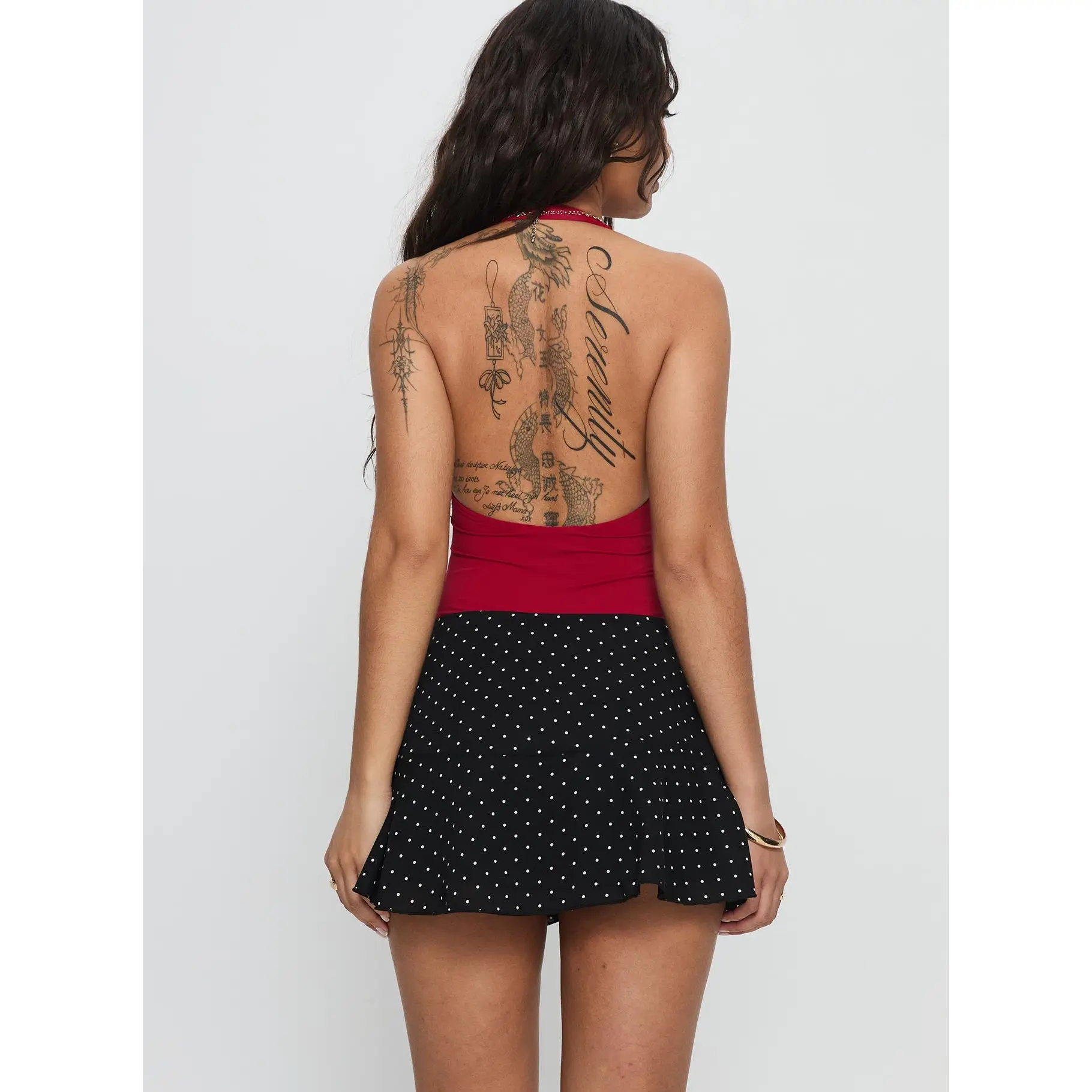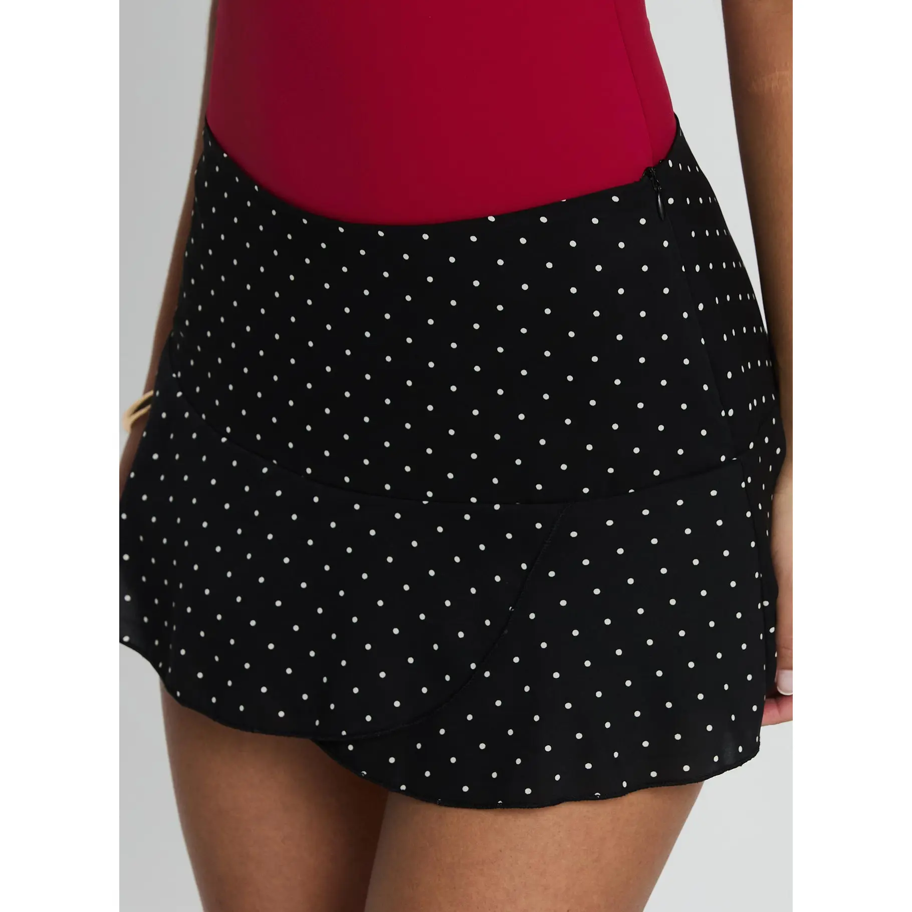 ·Cross-over hem detail, zip closure at side, mid-rise fit