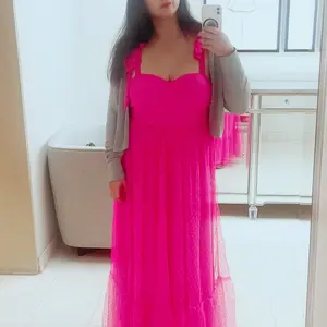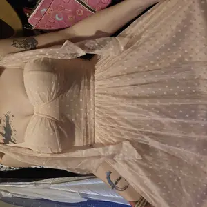 Such a cute dress and so fluffy! It is a bit thin and if you wear dark undergarments or have tattoos they will show through! Other than that it's a comfortable dress perfect for spring