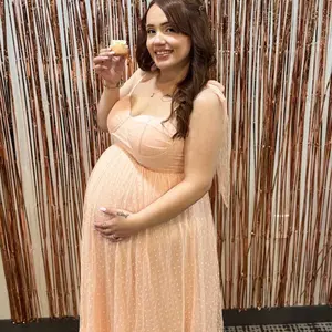 I bought this dress for my baby shower and got so many compliments! It's not a maternity dress at all so definitely size up if you're pregnant. I'm typically a size M/L but I got a size XL since I've gained some weight & I have a belly now. FYI, a good strapless bra is needed if you have big boobs