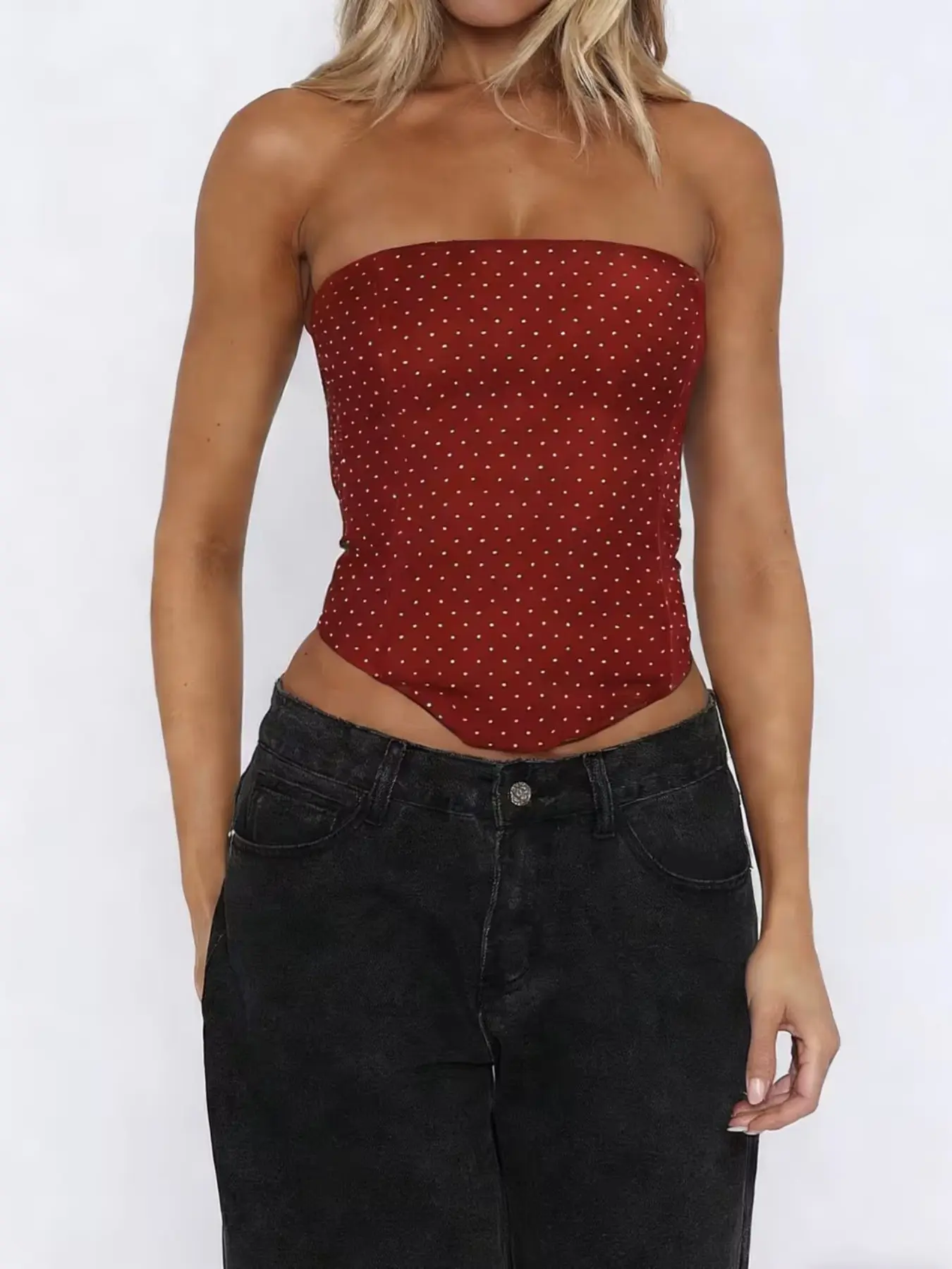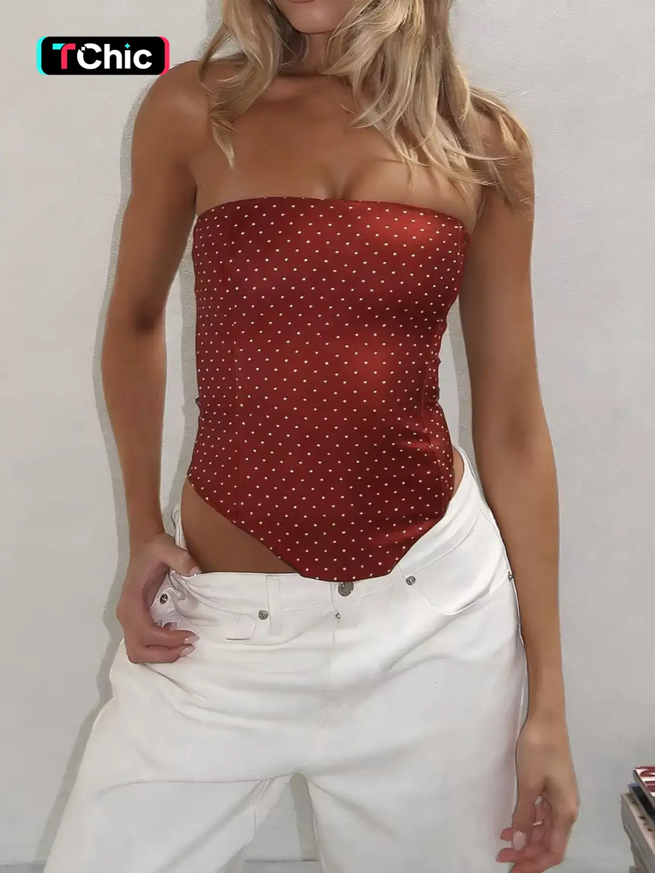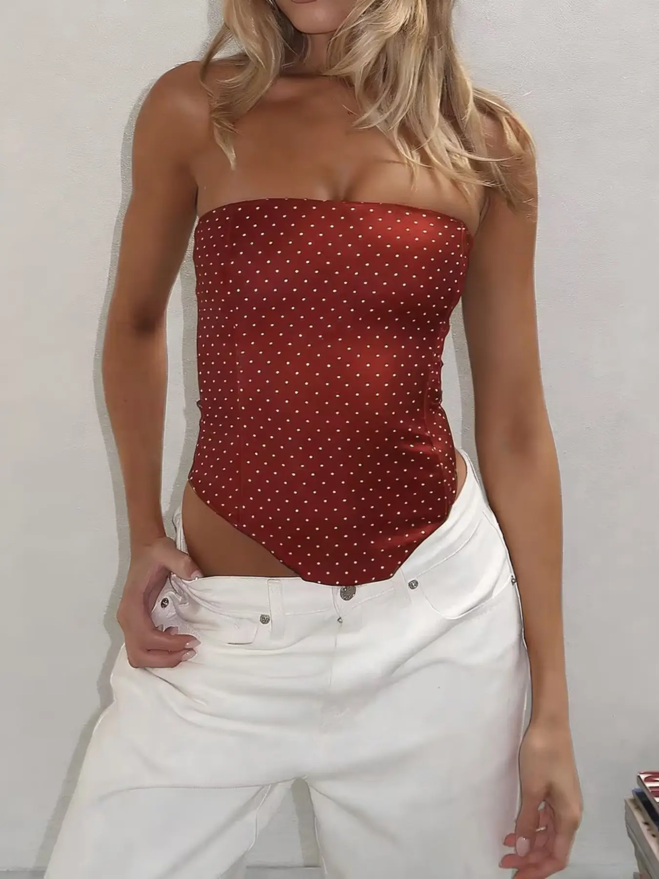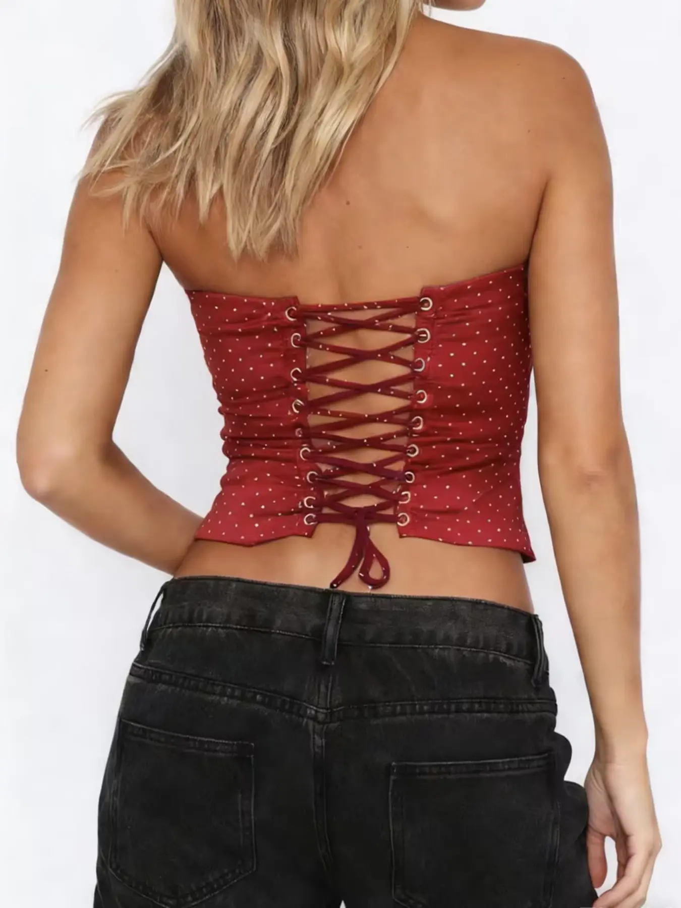 Women's Fashion New Elegant Polka Dot Basic Party Sexy Tie Back Strapless Bralette, All Seasons No Elasticity, Perfect for Parties