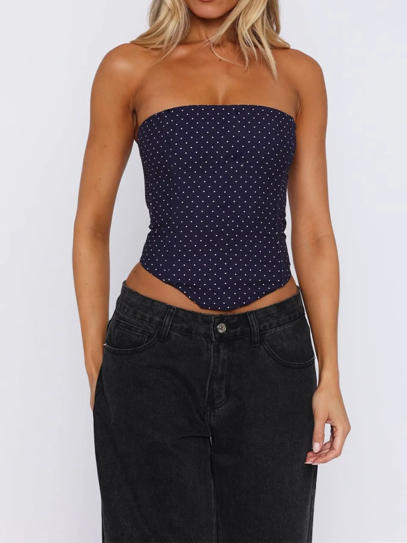 Elegant Women's Polka Dot Strapless Bralette, Tie-Back Design, Ideal for Parties & Casual Wear, Stylish Comfortable Top #falltops #shapewearwithbra #tanktops #workouttops #balconettebras #highwaistedbathingsuits #tanktopundershirt #posturecorrectorbra #womensswimwear #bodysuitobsessed