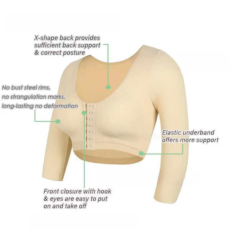 Arm Shaper for Women Post Surgery Push Up Bra Compression Long Sleeves Corset Corrector Front Closure Seamless Shapewear