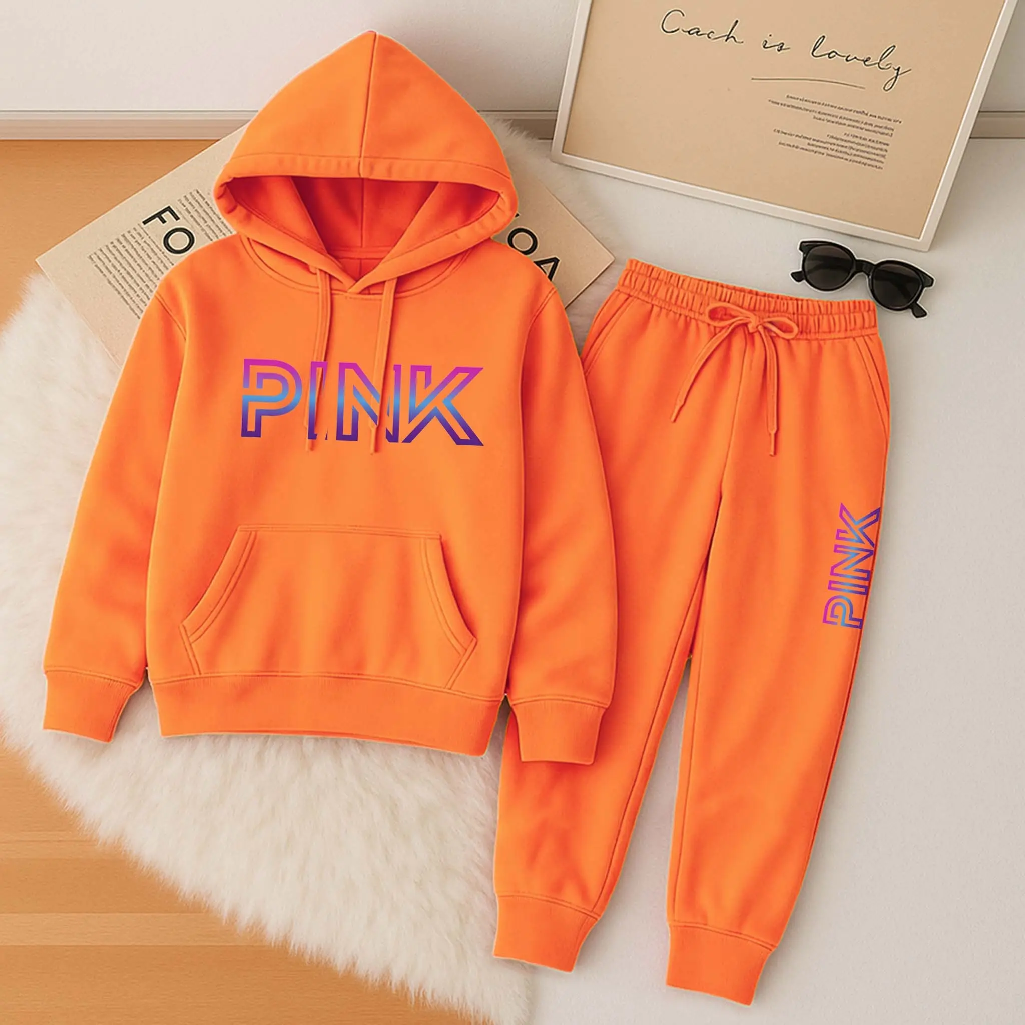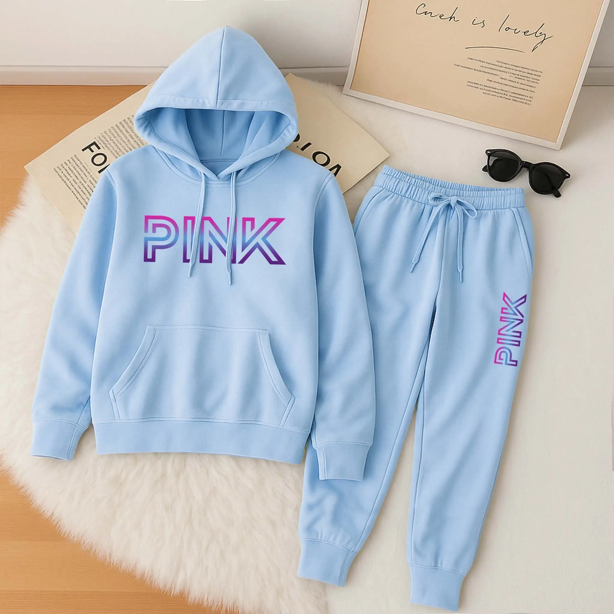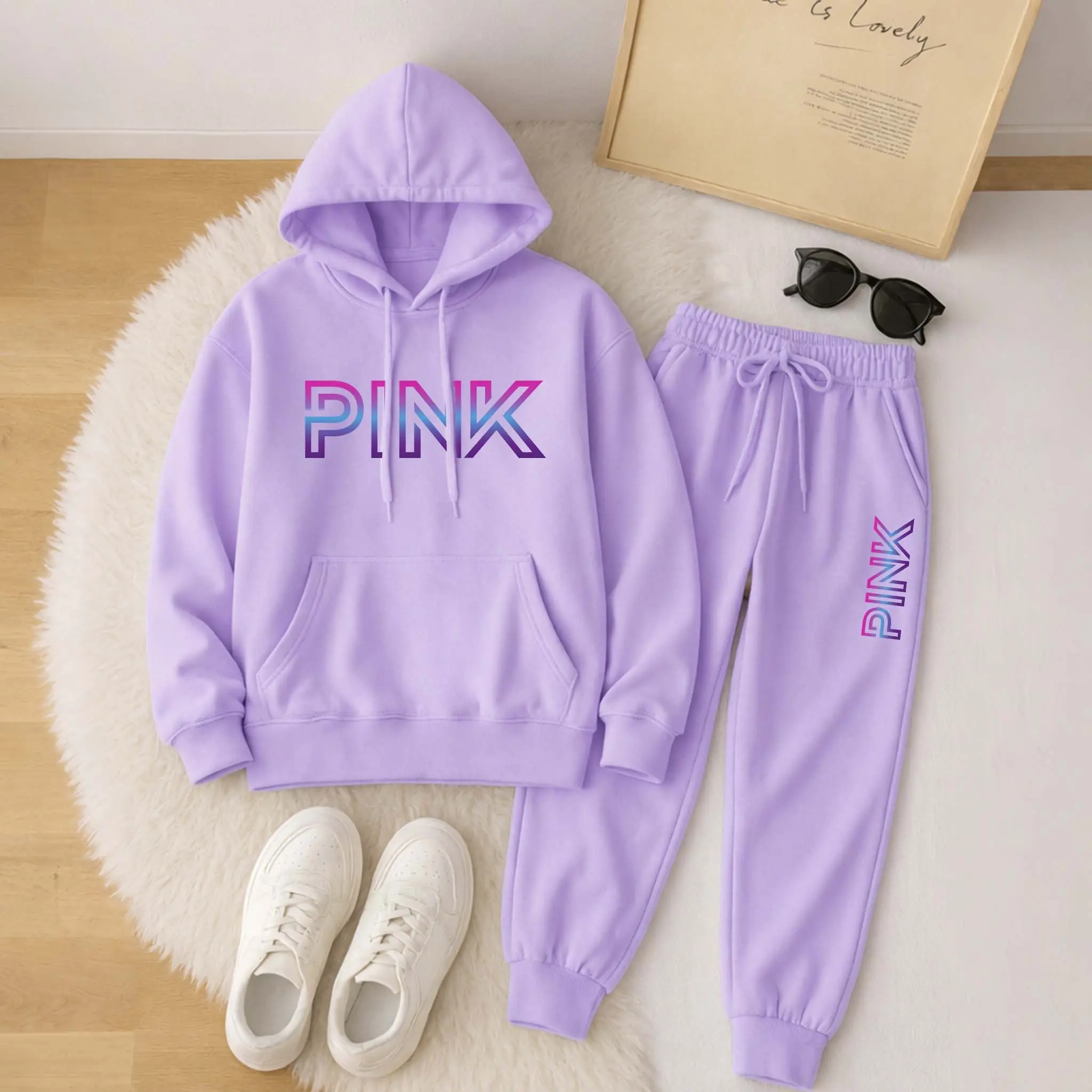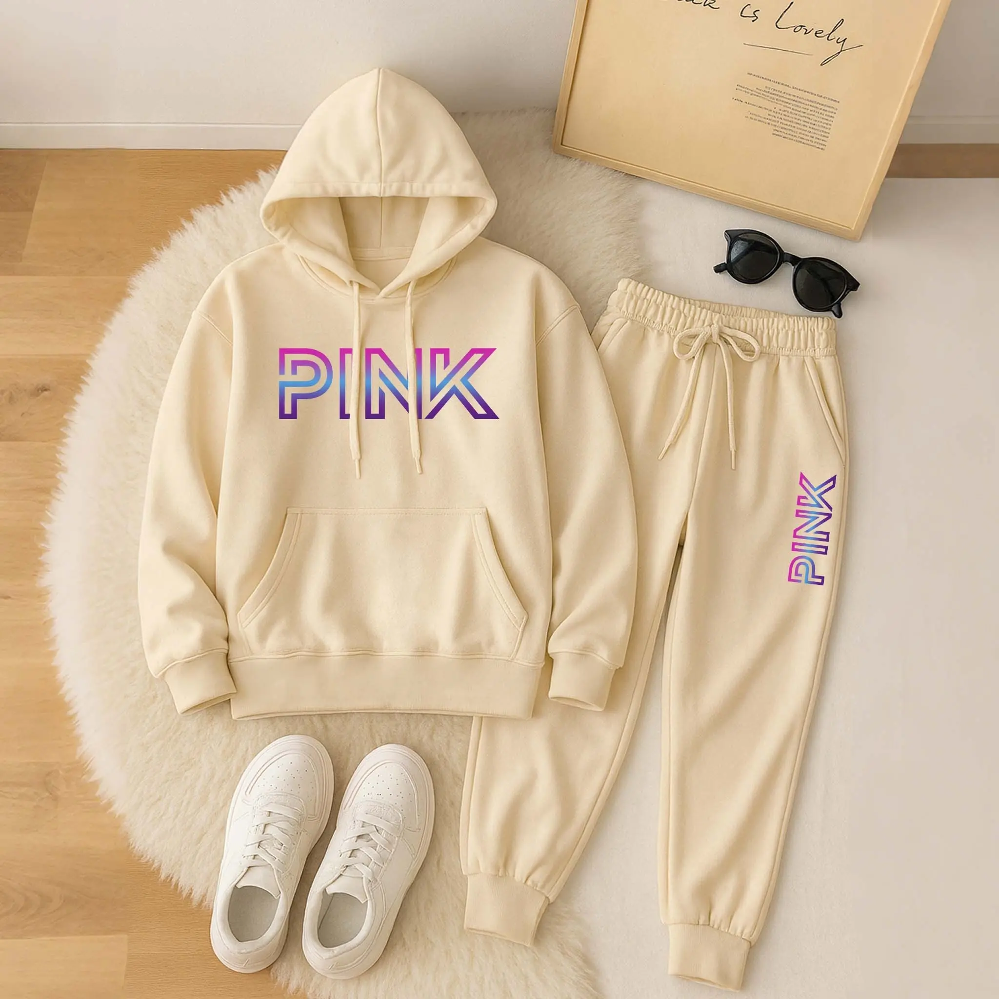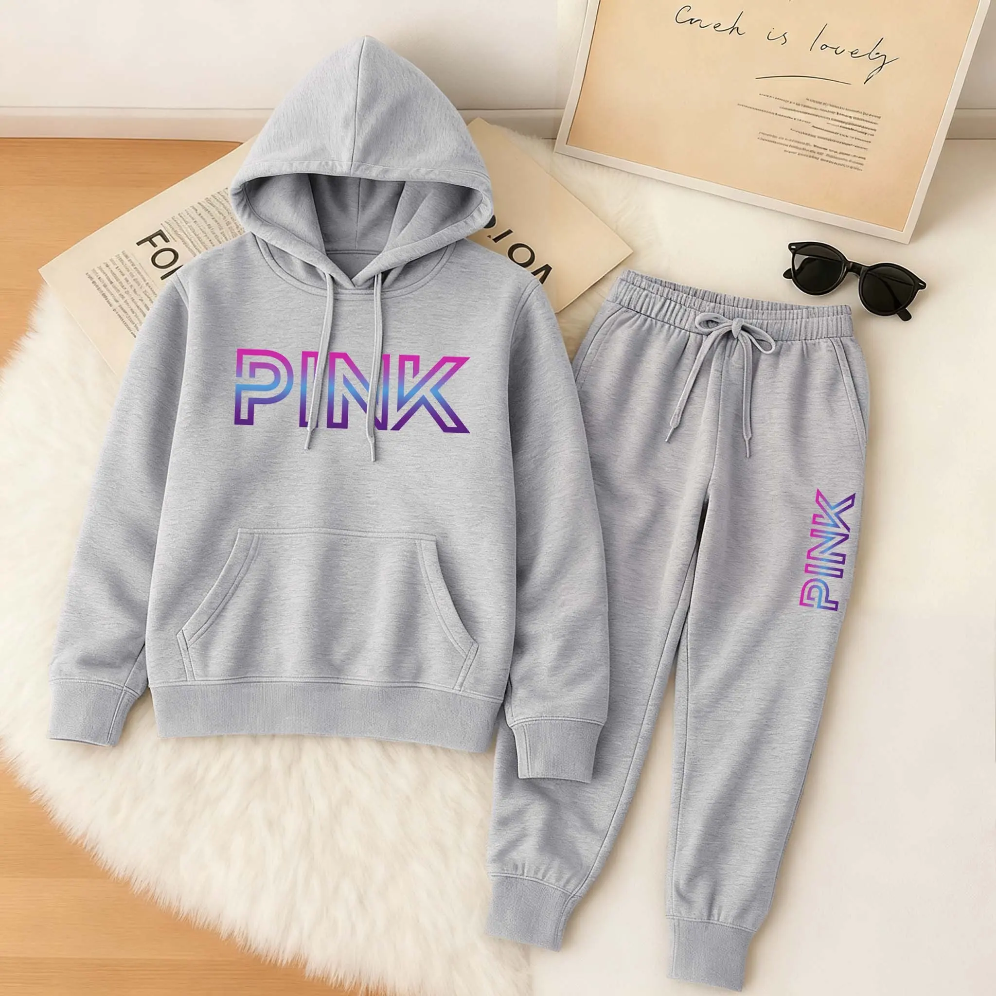 Printed Hoodie & Drawstring Sweatpants Set