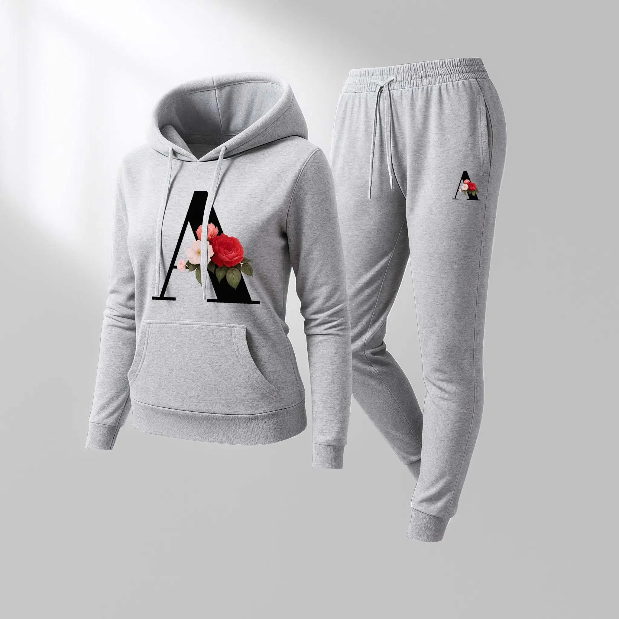 Printed Hoodie & Drawstring Sweatpants Set