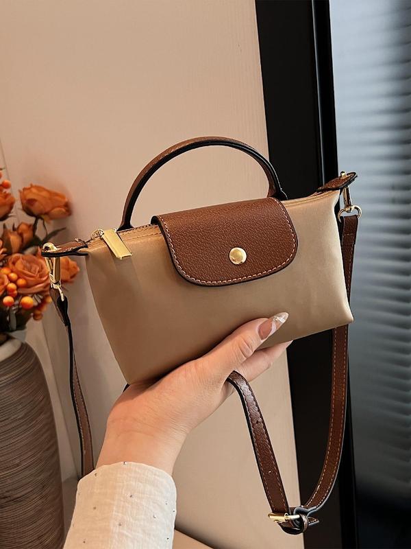 Women's Fashionable PU Leather & Canvas Crossbody Bag, Casual Versatile Hobo Bag for Work & Daily Used, Trendy All-match Commuter Bag