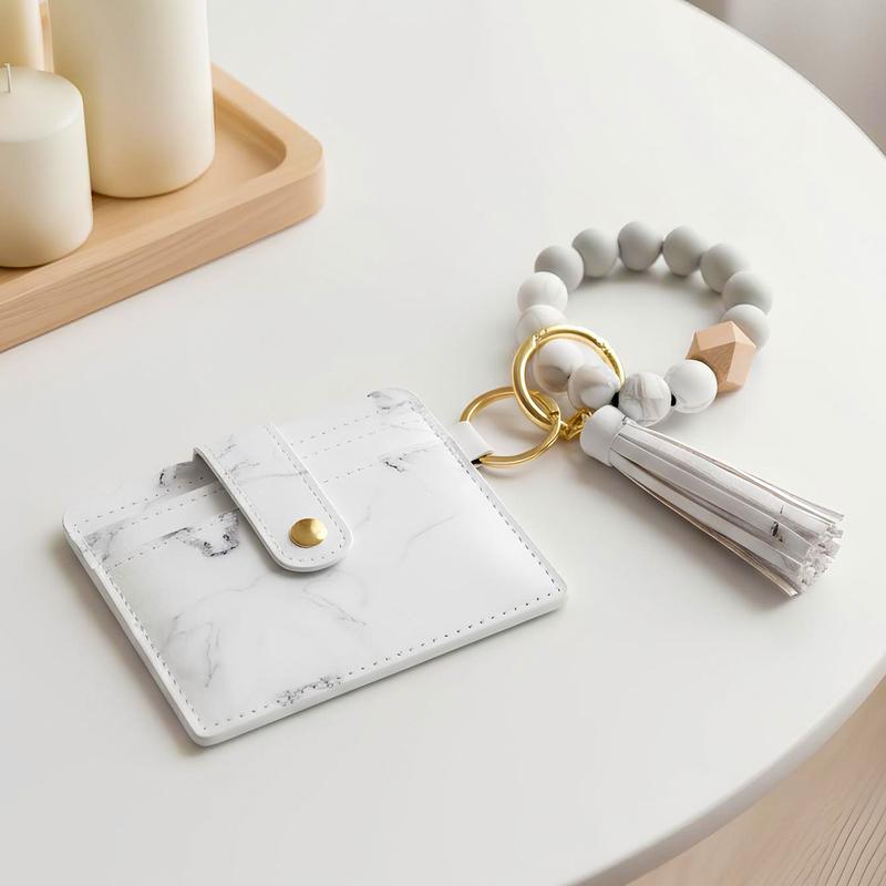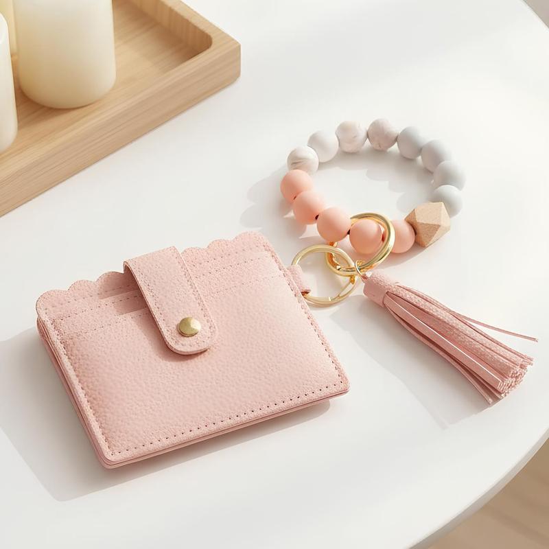 【2026 Womens Gift】Women's Smart Card Wallet,Fashion Beaded Decor Pu Leather Keychain,Card Capacity | ID Window | Cash Slot vintage wallet fashionable small pu leather wallet