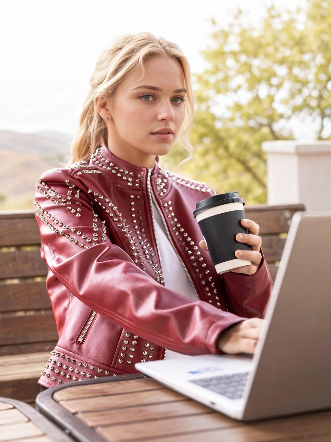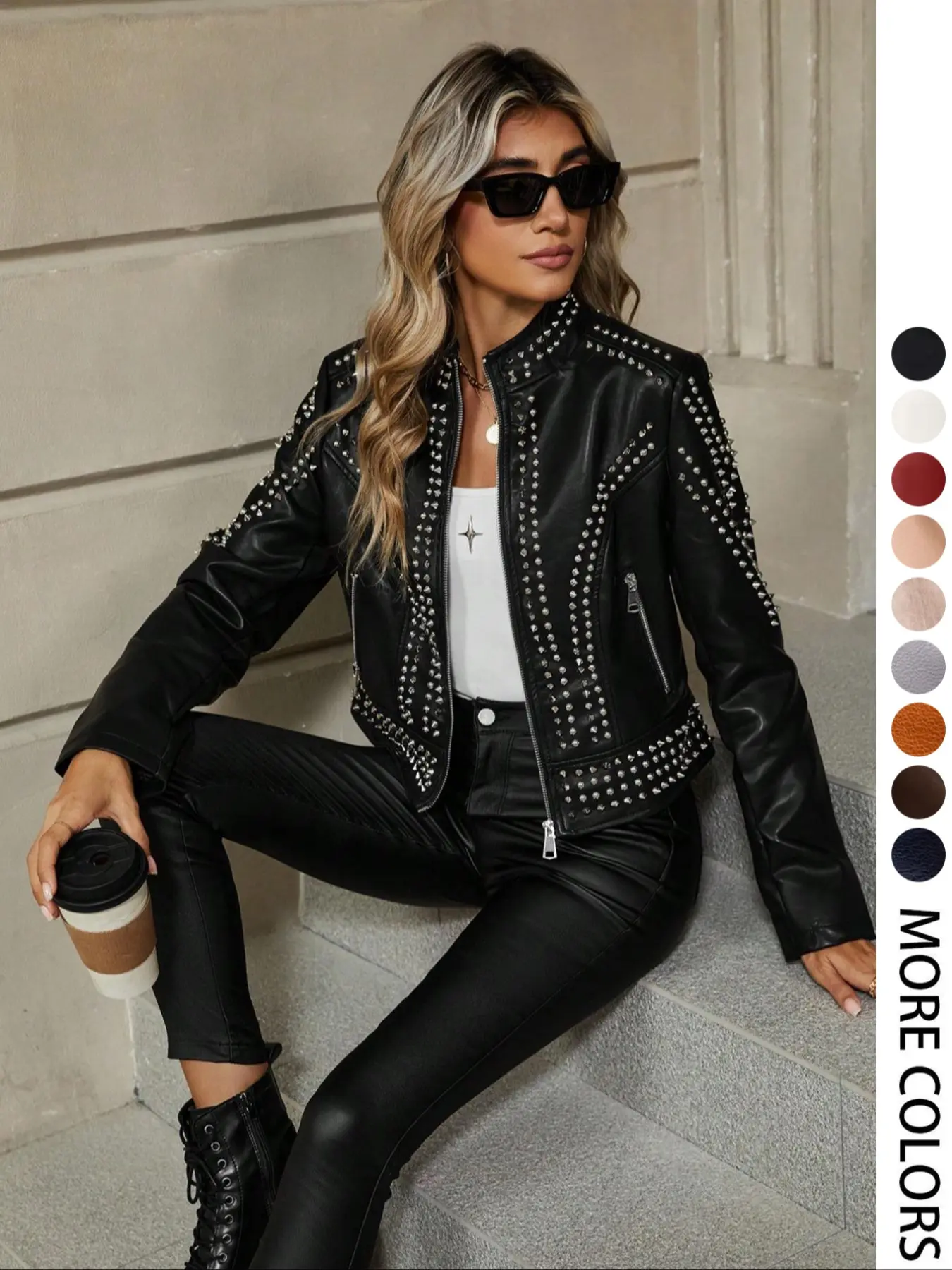 I really love the jacket, nice quality and feel to it. I get lots of compliments when wearing it, also odered the other colors in red and white. Long hair gets stuck in the studs on back of neck area on the jacket, other than that it's a showstopper!