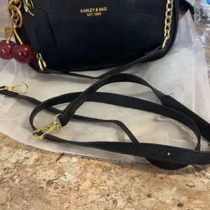 The purse is absolutely beautiful love the cherry charm that came with the bag