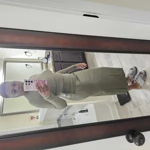 Love this skirt fits very well Im 5’2 and its not to long. Fits fitted to body I purchased a M. Good material doesn’t look cheap. Doesn't have a zipper.