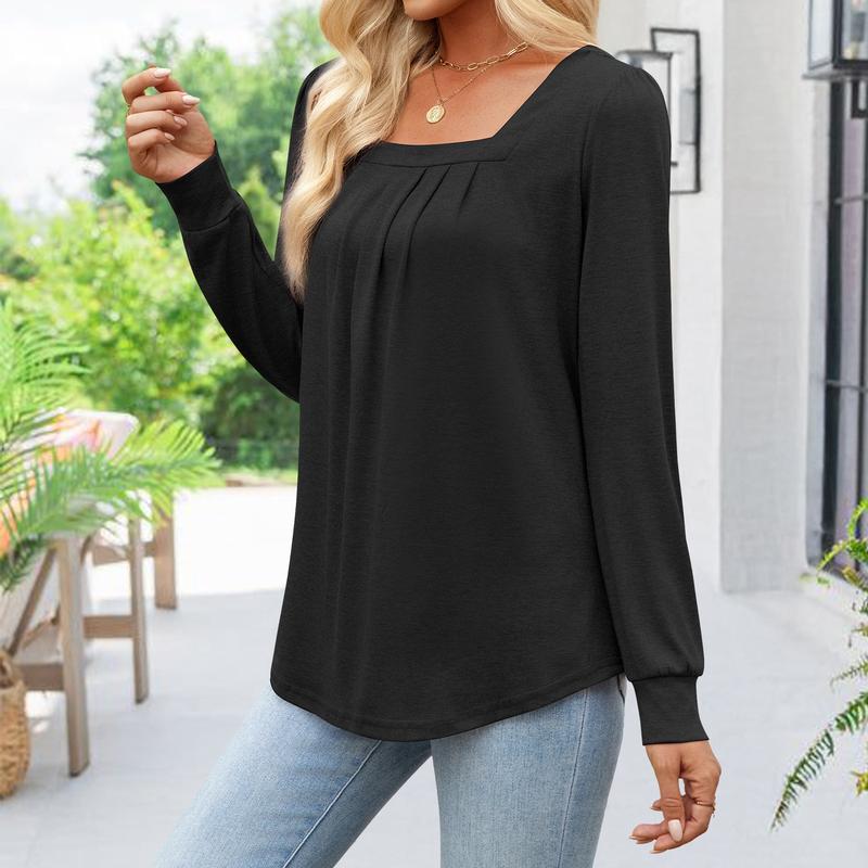🌟 Comfy Material: Crafted from soft, stretchy, and lightweight fabric, this square neck long sleeve top ensures comfortable wear. Perfect for transitioning from spring to winter, it offers warmth and comfort.