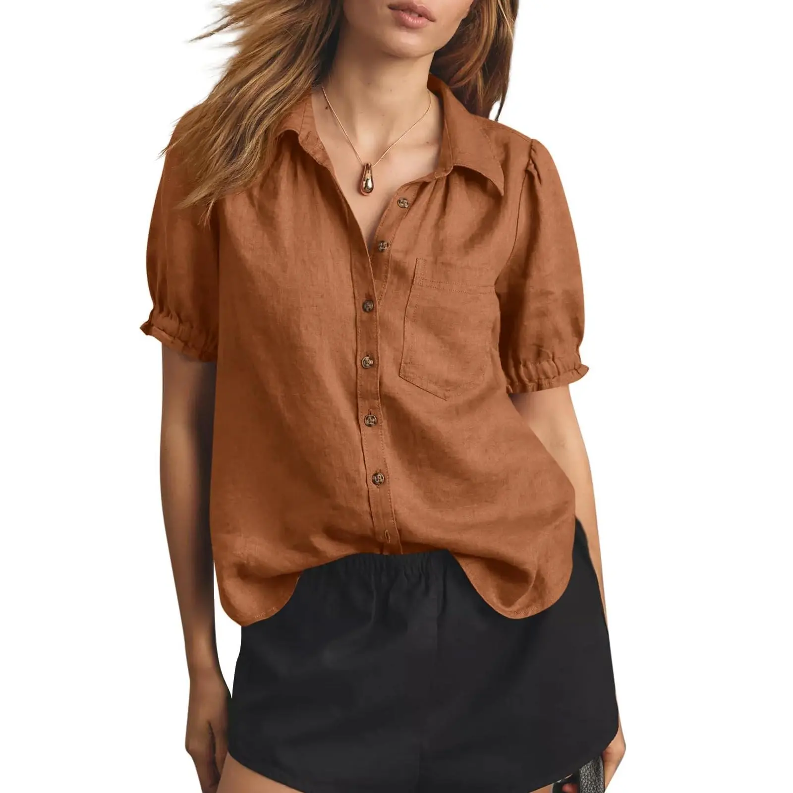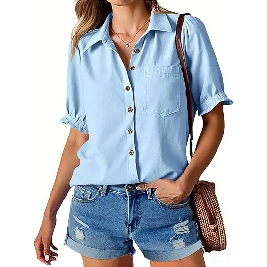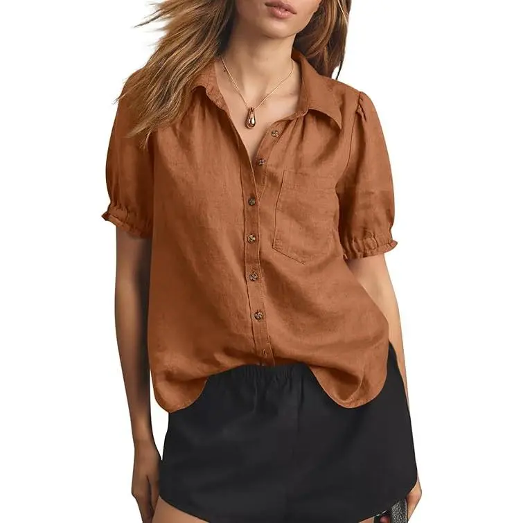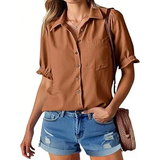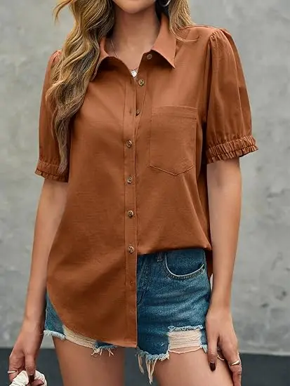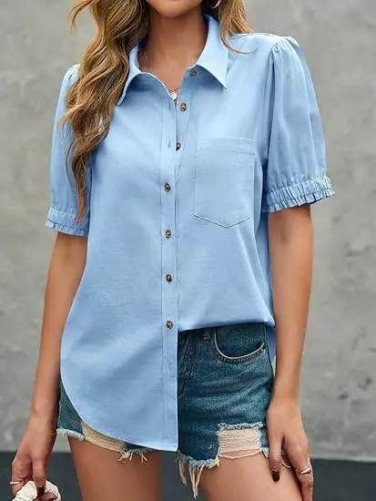 High Quality Fabric: The summer puff sleeve button down shirts are crafted from 65% cotton and 35% viscose, ensuring a soft, lightweight and comfortable feel