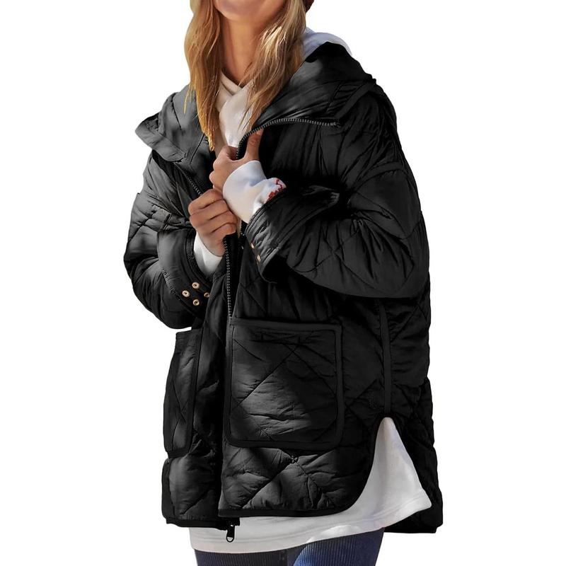 Womens Quilted Puffer Jacket Hooded Long Sleeve Zip Up Lightweight Warm Jackets