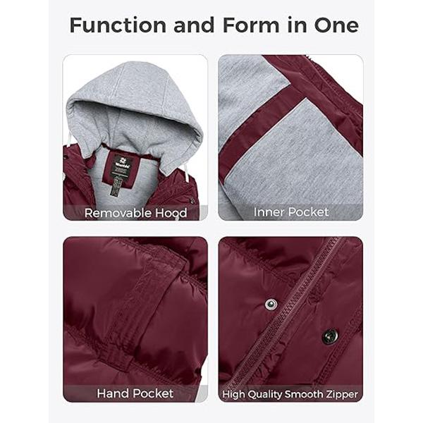 ·Warm Puffy Vest That Lasts- You deserve a cozy winter coat for women that keeps up with your busy lifestyle. The women's winter vest features a removable hood with an adjustable drawstring, 2 big zipper side pockets, and 1 deep inside chest pocket which keeps you warm against the chilly breeze.