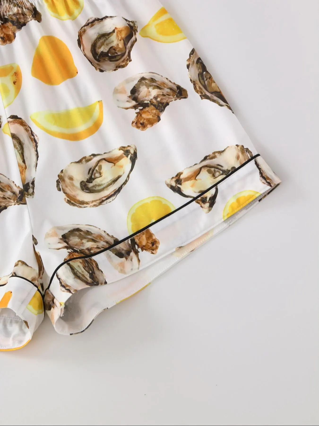 Women's All Over Print Shirt & Shorts Pyjama Two-piece Set, Casual Comfy Short Sleeve Top & Shorts Set, Ladies Sleepwear for All Seasons, Shorts Pj Set
