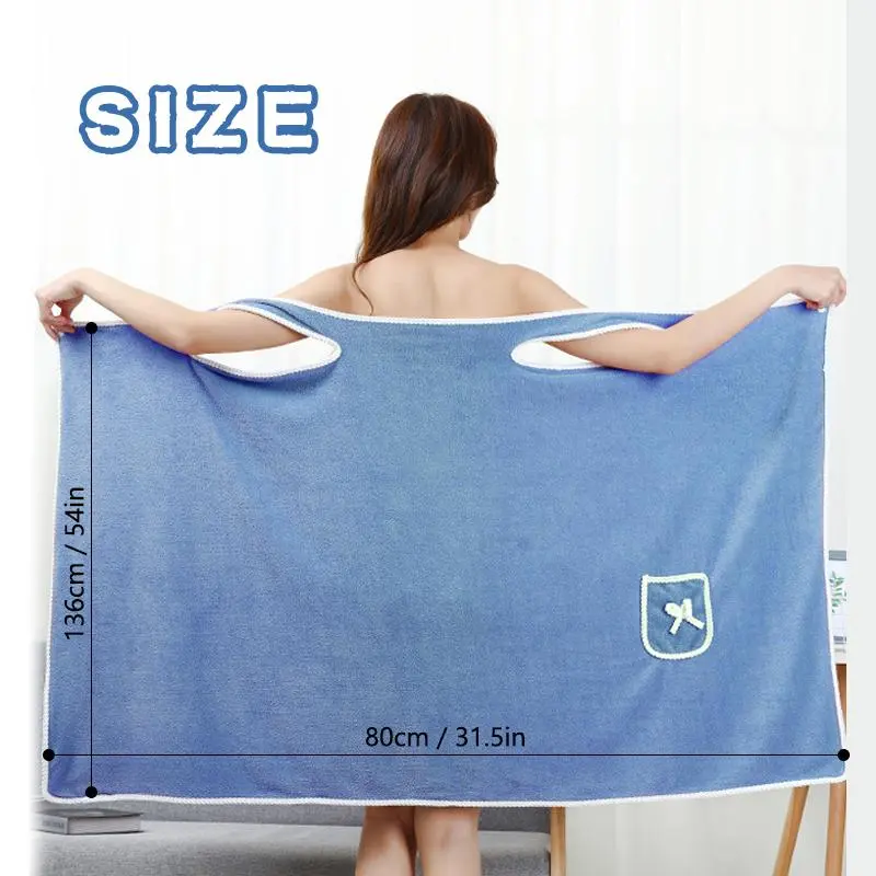 Quick-Dry Coral Fleece Wrap Towel for Women – Soft, Absorbent, Blue Shower Wrap with White Logo & Pocket Details