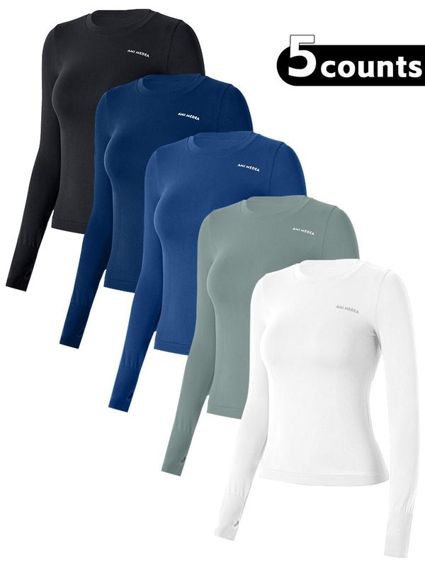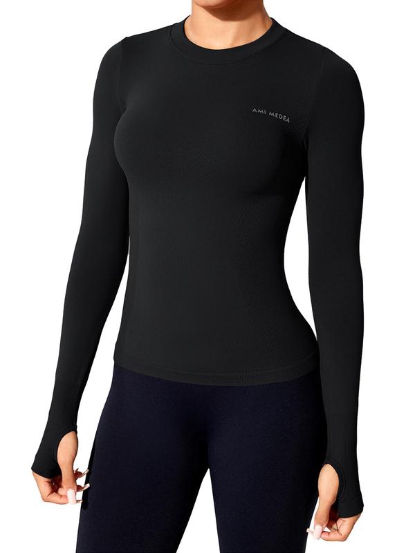 5. Women's Letter Print Thumb Hole Design Sports Tee, Quick Drying Breathable Long Sleeve T-shirt for Gym Workout Running, Ladies Sportswear for Fall & Winter, Casual Workout Tops