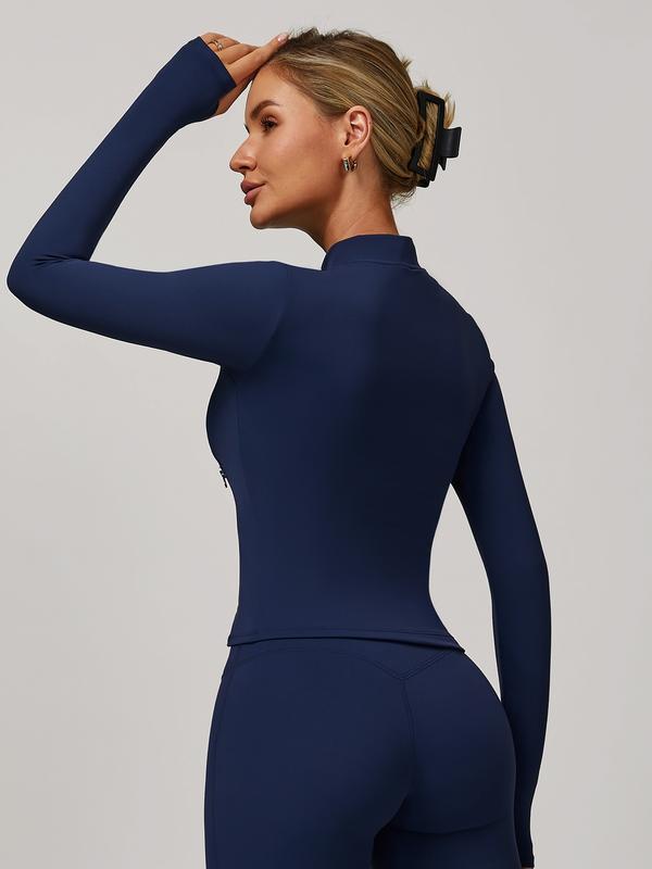 Women's Autumn Winter Zipper Long Sleeve Quick-Dry Yoga Jacket, Outdoor Casual Running Sports Gym Top, Breathable Activewear