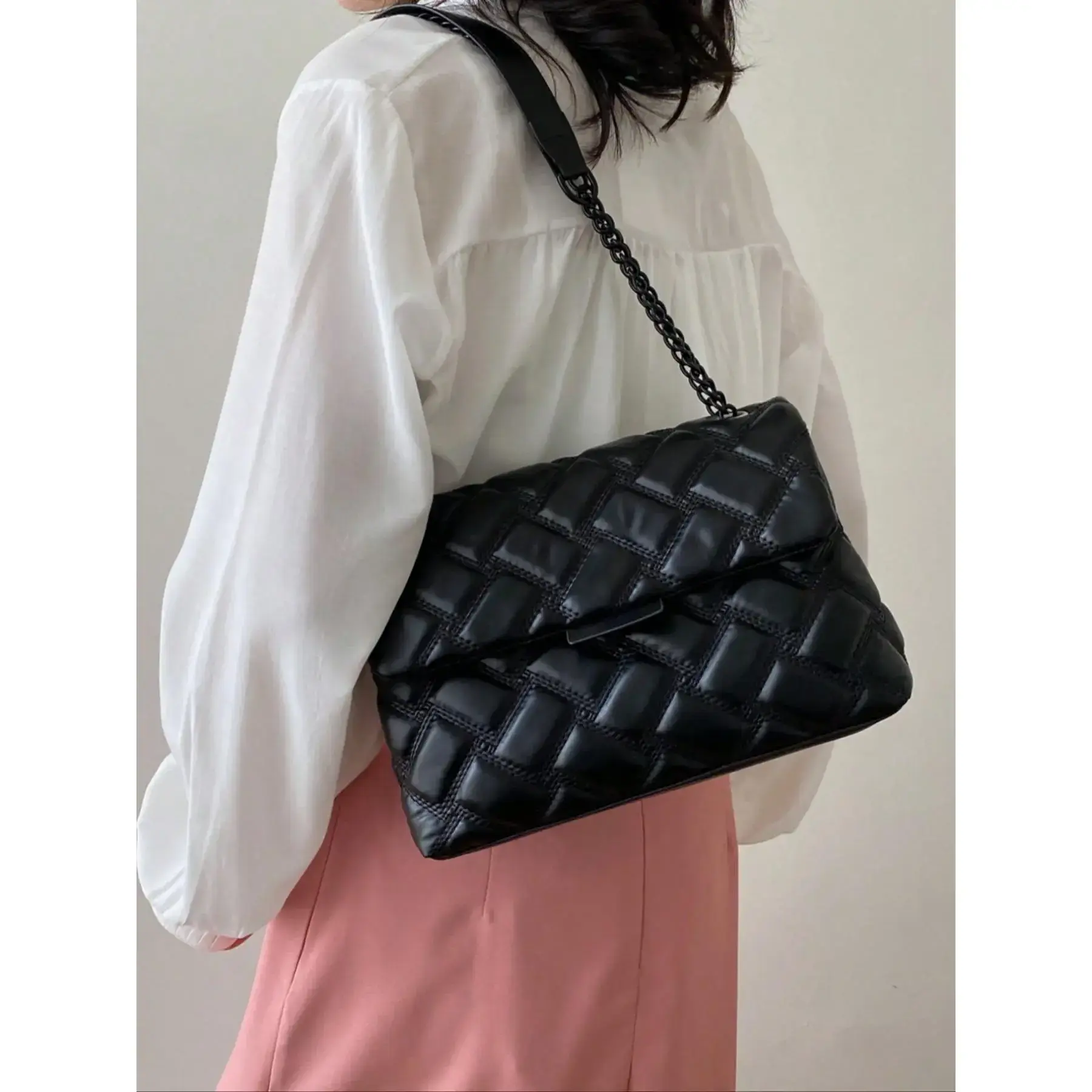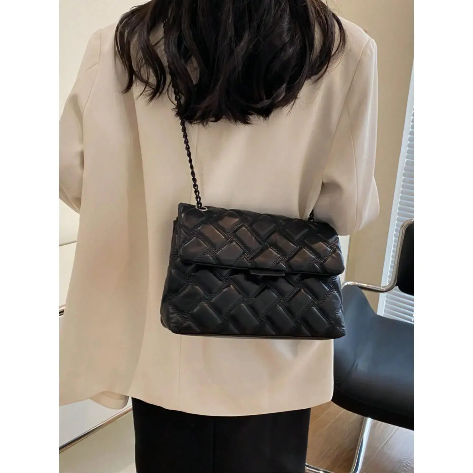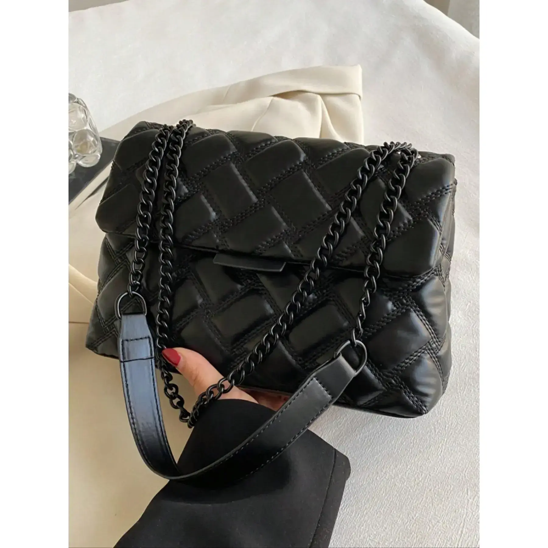 5. Women's Fashionable Quilted Chain Strap Crossbody Bag, Casual Solid Color Shoulder Bag for Daily Used, Trendy All-match Commuter Bag