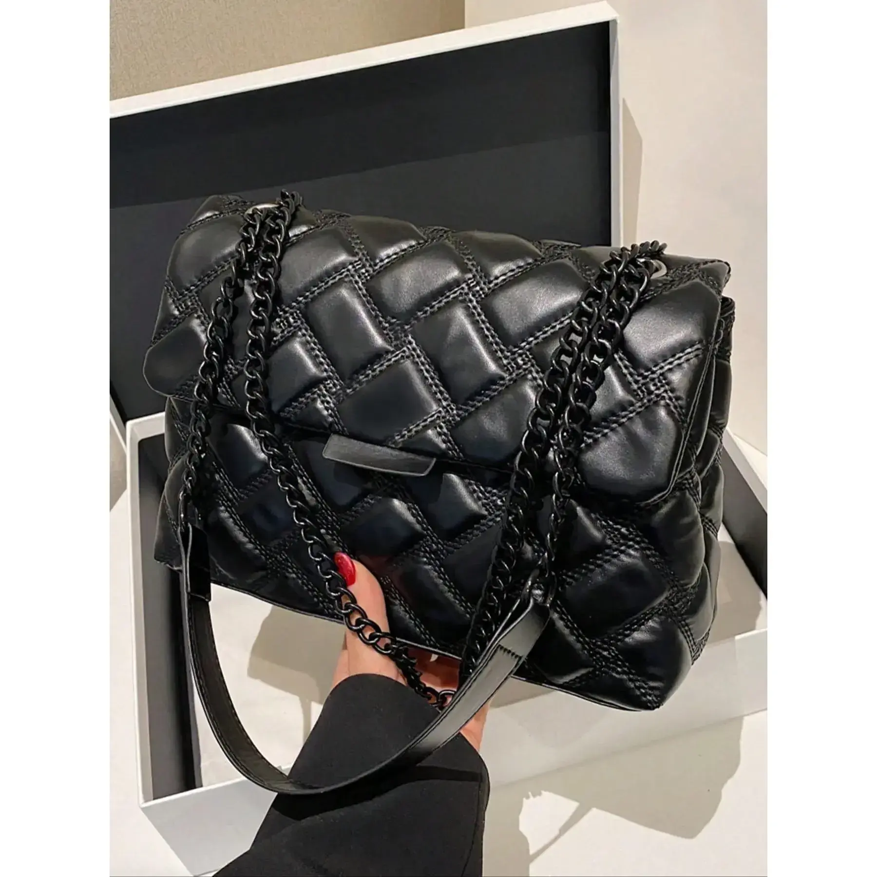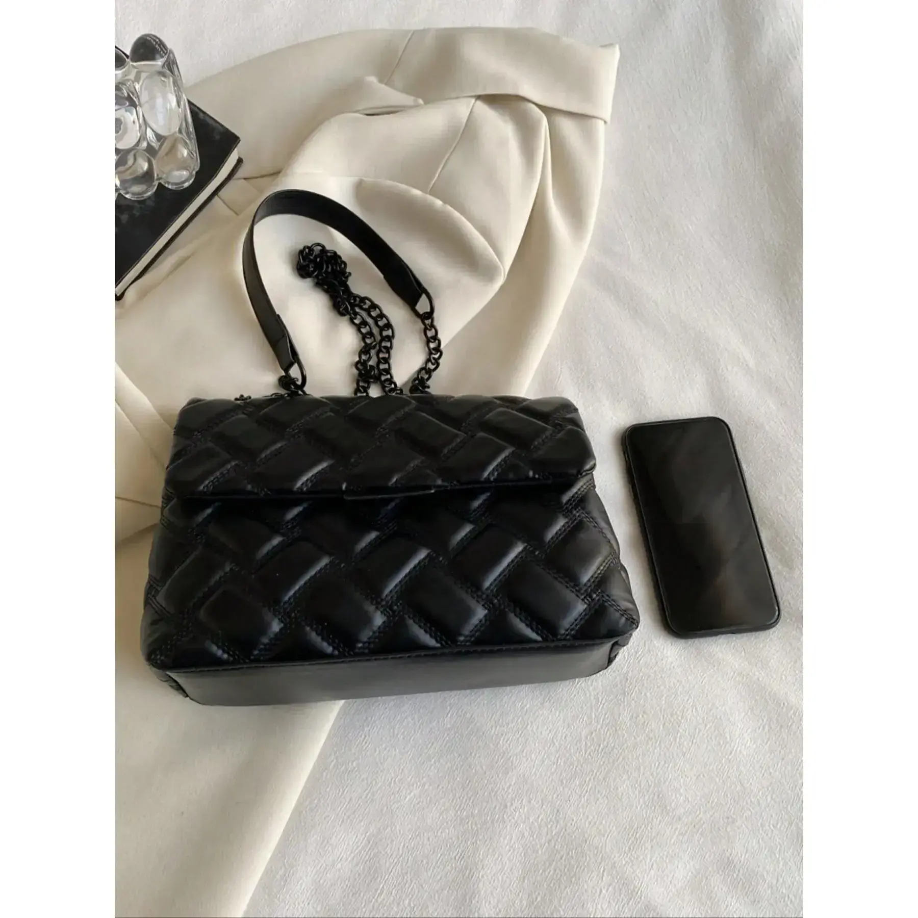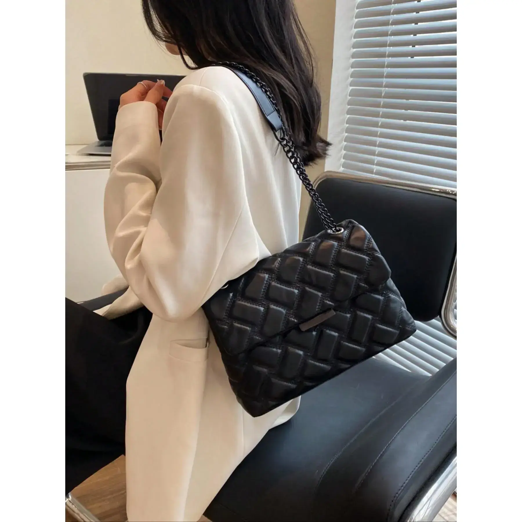 5. Women's Fashionable Quilted Chain Strap Crossbody Bag, Casual Solid Color Shoulder Bag for Daily Used, Trendy All-match Commuter Bag