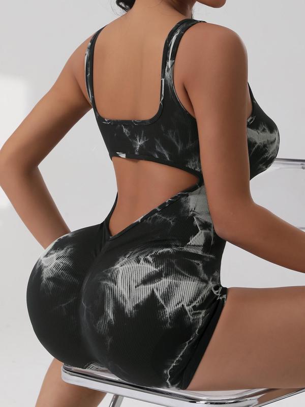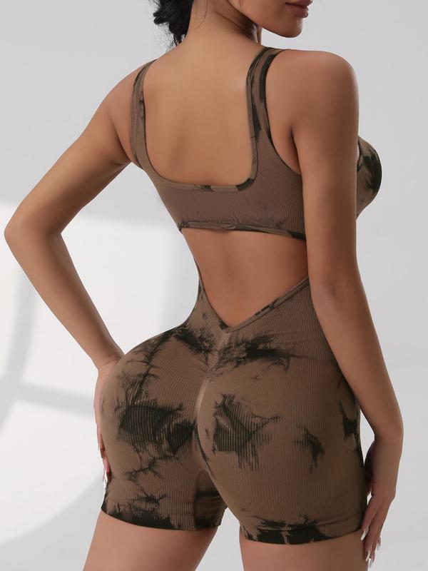 5. Women's Solid Striped Print Scoop Neck Racerback Tank Romper, Casual Comfy Breathable High Stretch Seamless Bodysuit for Daily Wear, Ladies Clothes for All Seasons, Tops