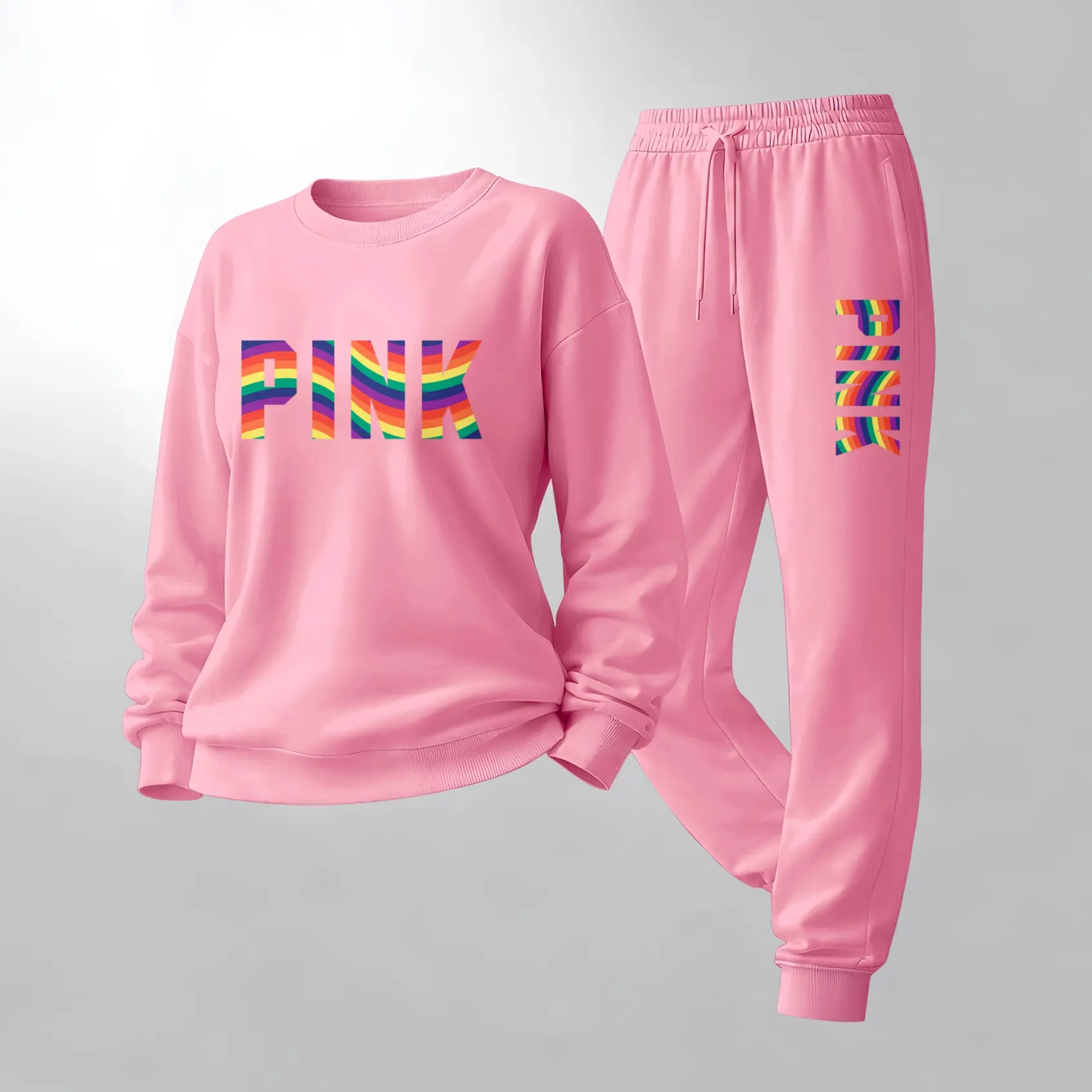 Women's Crewneck Sweatshirt & Drawstring Sweatpants SetMaterial: 100% Polyester