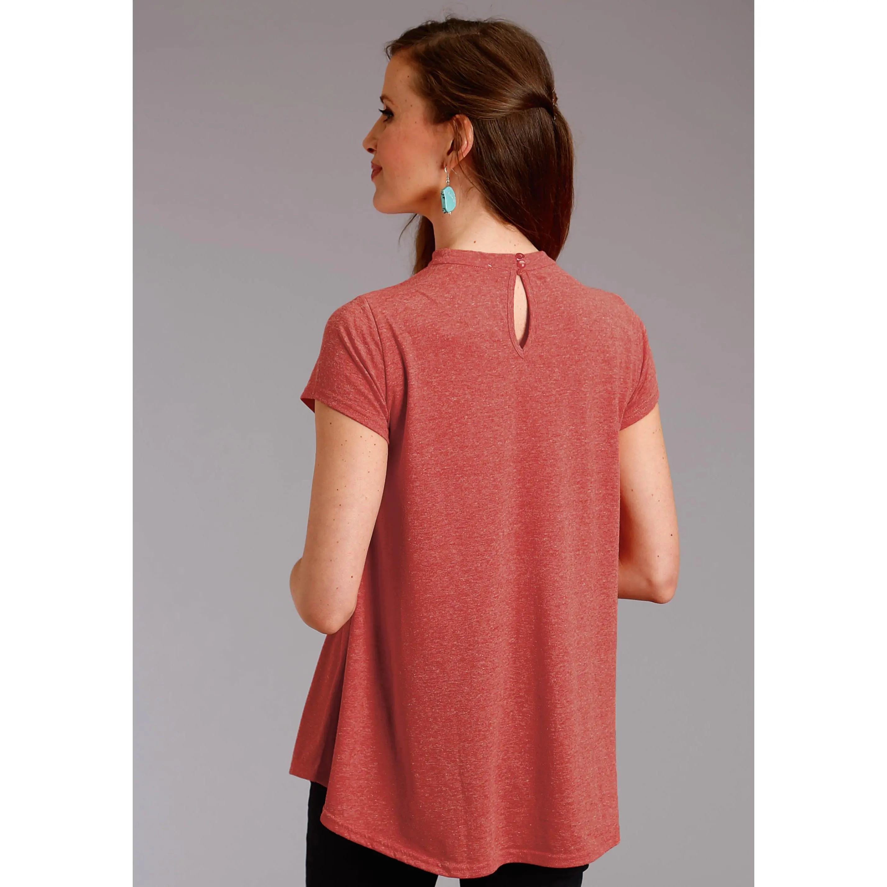Womens Red Solid Short Sleeve Knit Top
