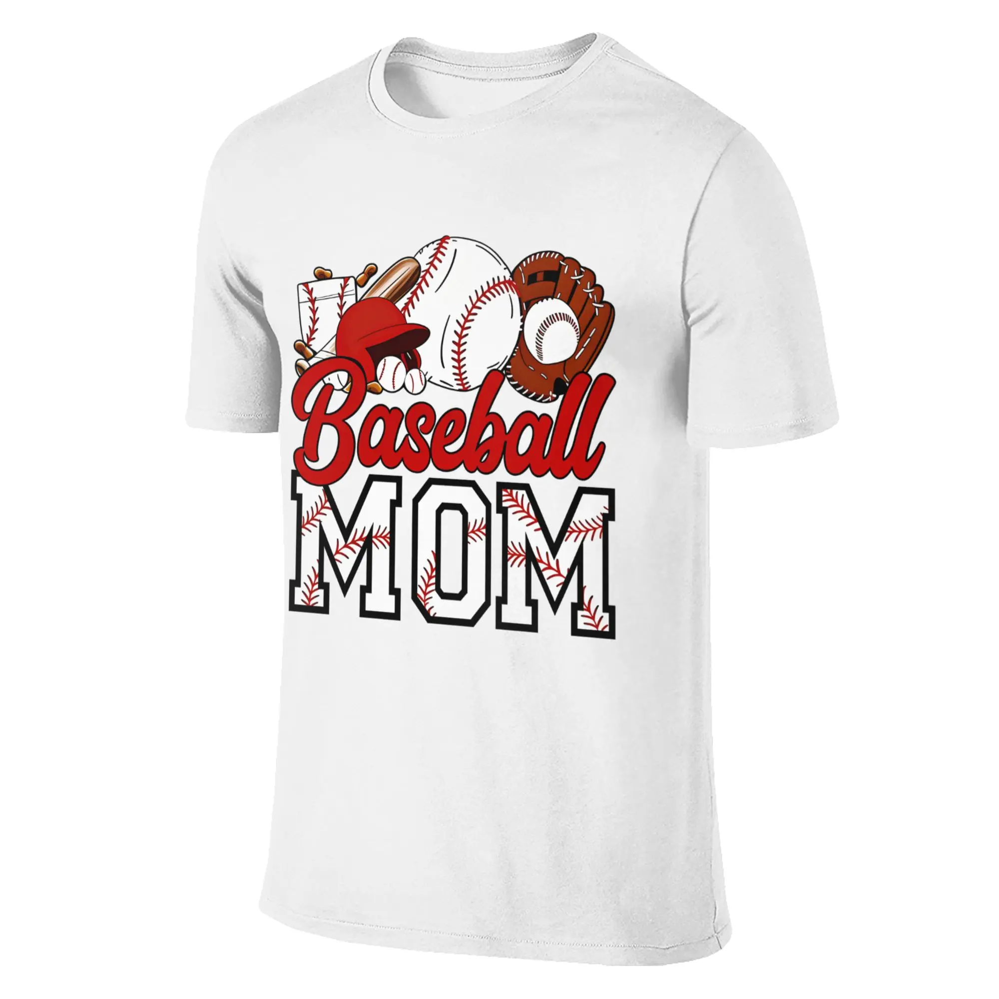 Show your pride for your baseball star with our Baseball Mom Graphic T-Shirt! This casual and comfortable short-sleeve tee features a vibrant design with baseballs, a bat, glove, and the bold "Baseball MOM" lettering. Made from soft, breathable fabric, it's perfect for cheering at the game, running errands, or just relaxing at home. The classic crewneck and relaxed fit make it easy to pair with jeans, shorts, or leggings for a sporty, effortless look. A must-have for every dedicated baseball mom!