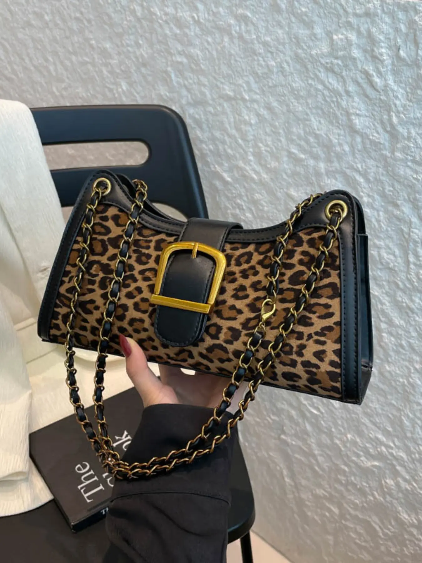 Fashion Vintage Leopard Print Large Capacity Soft Leather Tote Bag, Single Shoulder Crossbody Bag for Various Occasions and Parties