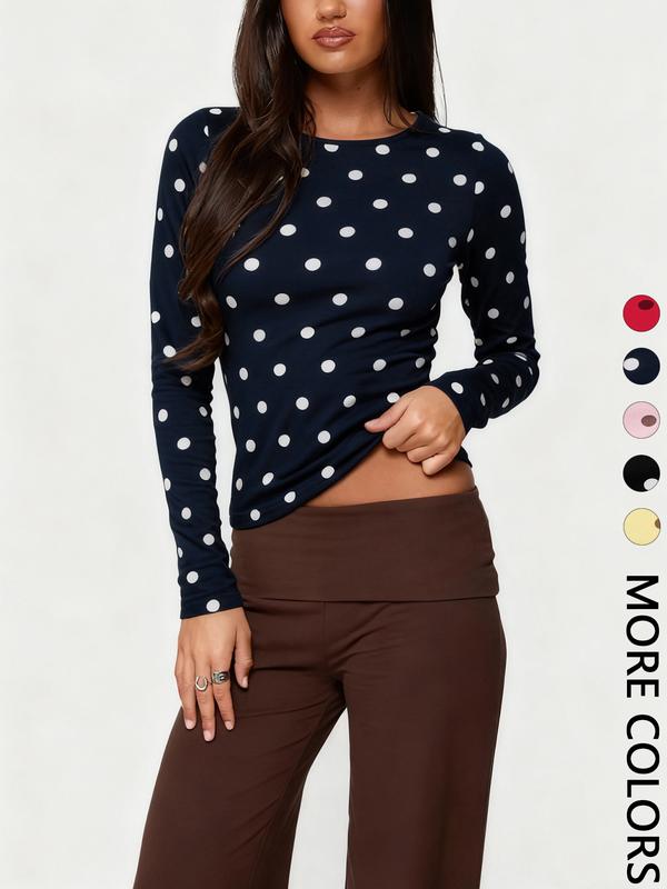 Women's Polka Dot Long Sleeve Slim Fit Short Top, Vintage Bodycon, Perfect for Dates and Shopping, Stylish Casual Wear