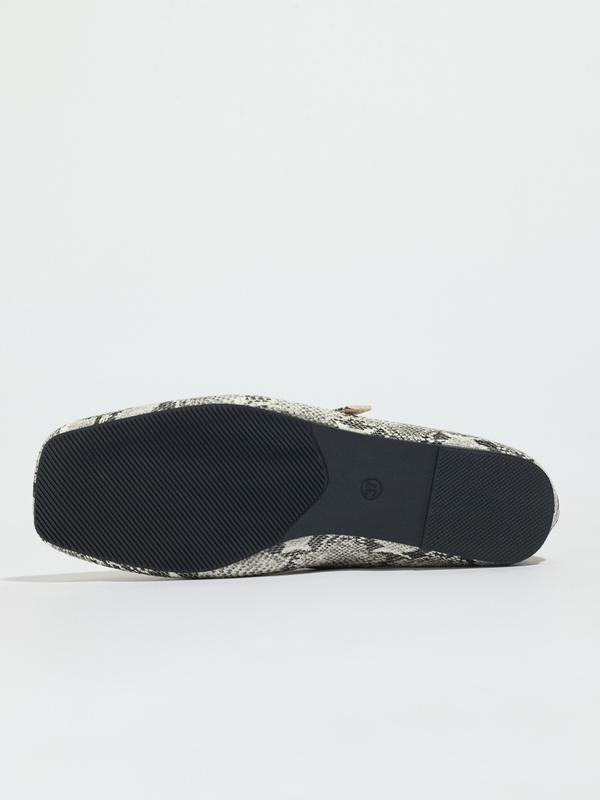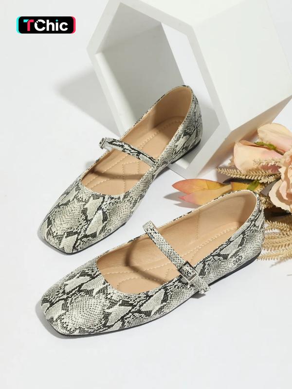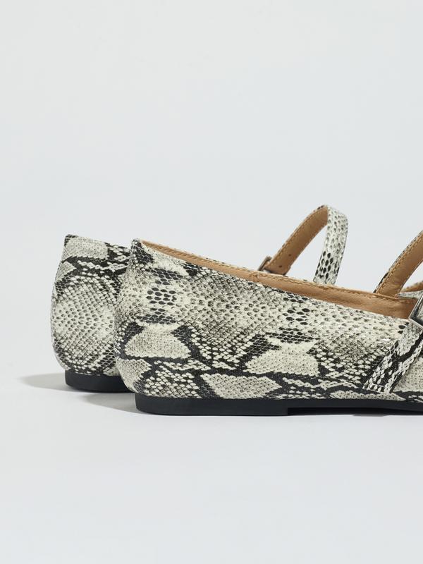 Women's Retro Snake Print Flat Mary Jane Shoes, Metal Buckle Slip-On Ballet Flats, Soft Sole Flats, Comfortable Low Heel Summer Shoes