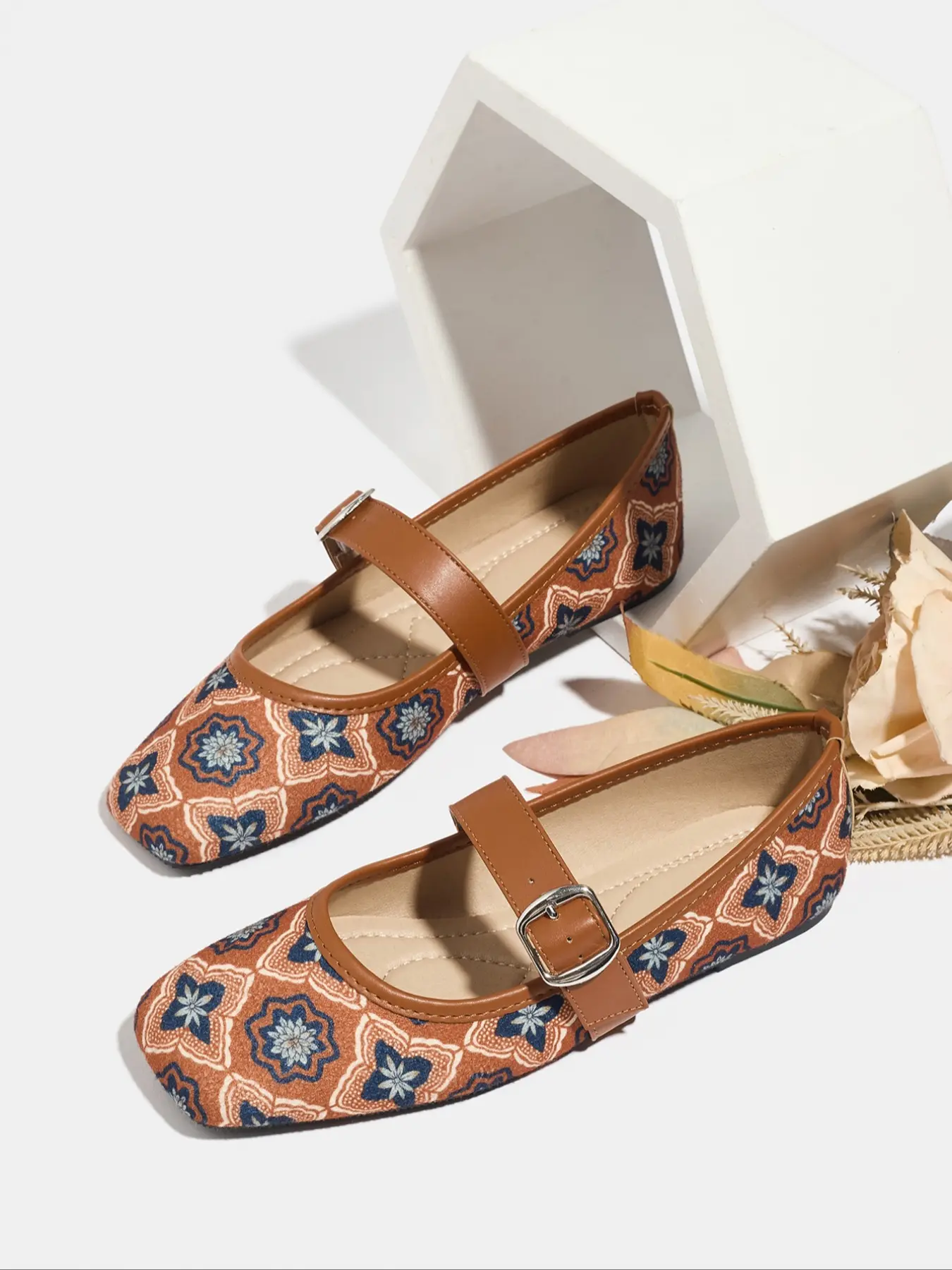 #flatshoes #embroideryamaryjane #brownvintagepatternedflatshoes