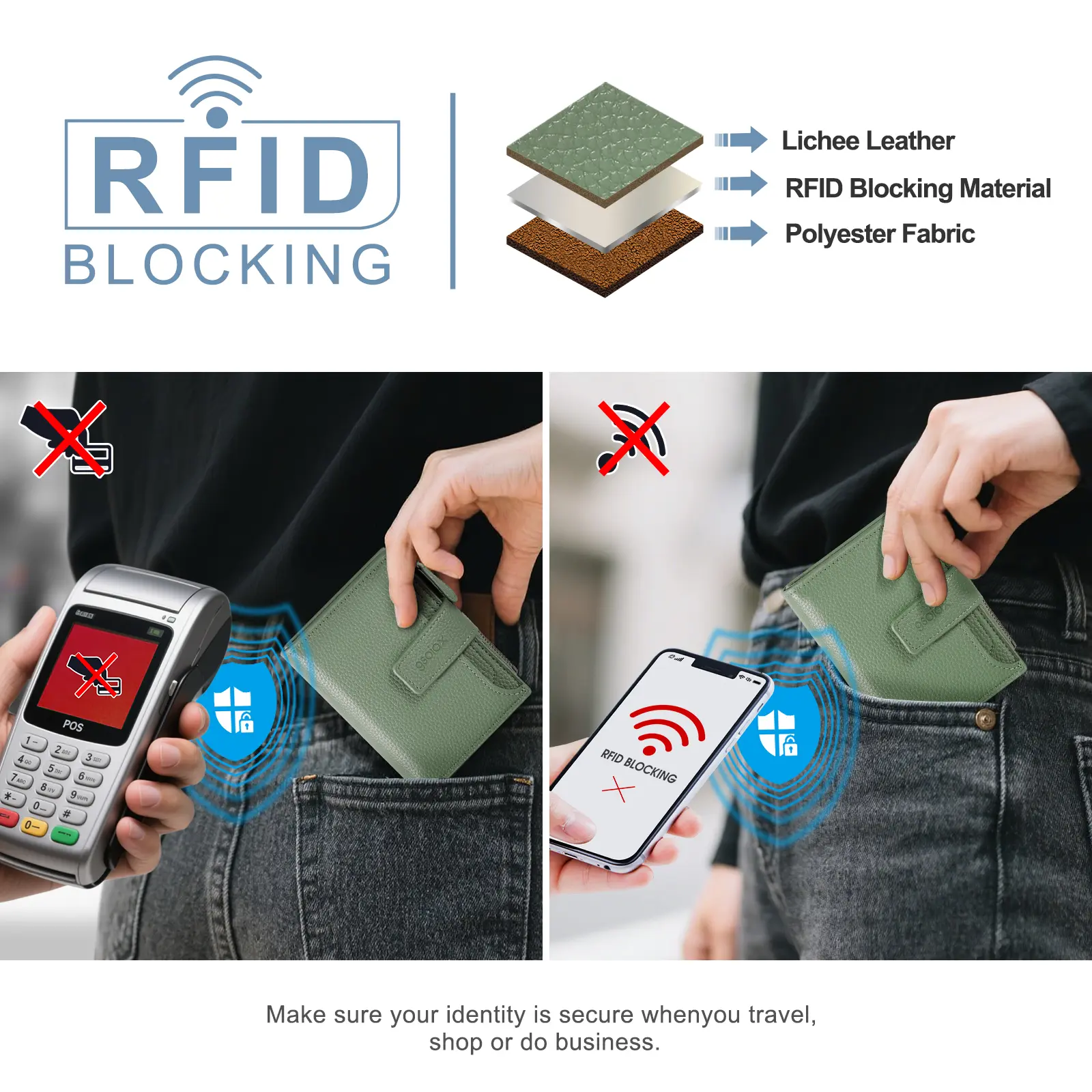 【RFID Blocking】: This wallet uses RFID blocking technology to protect your personal information from unauthorized scans. Keep your details safe and secure.