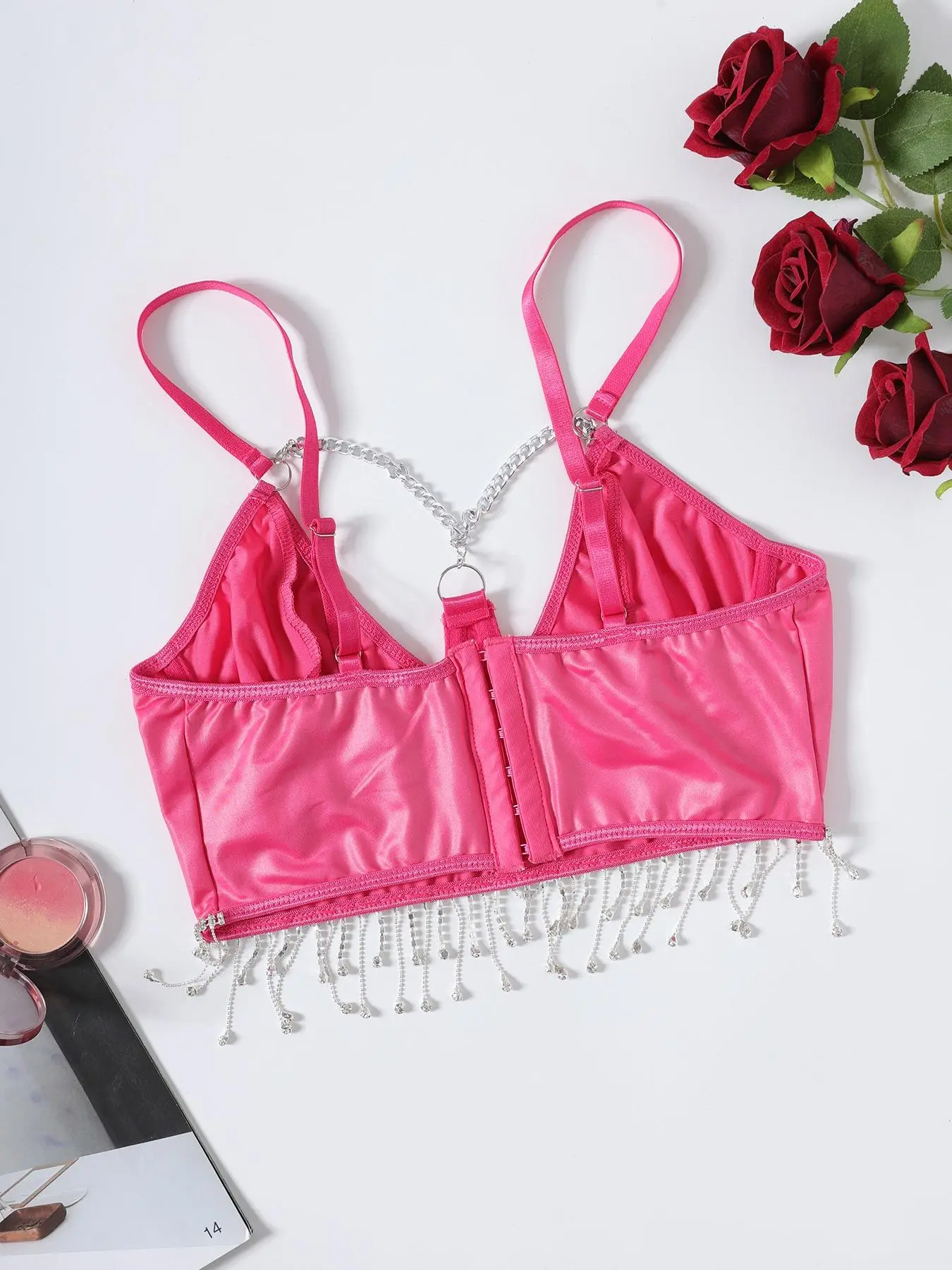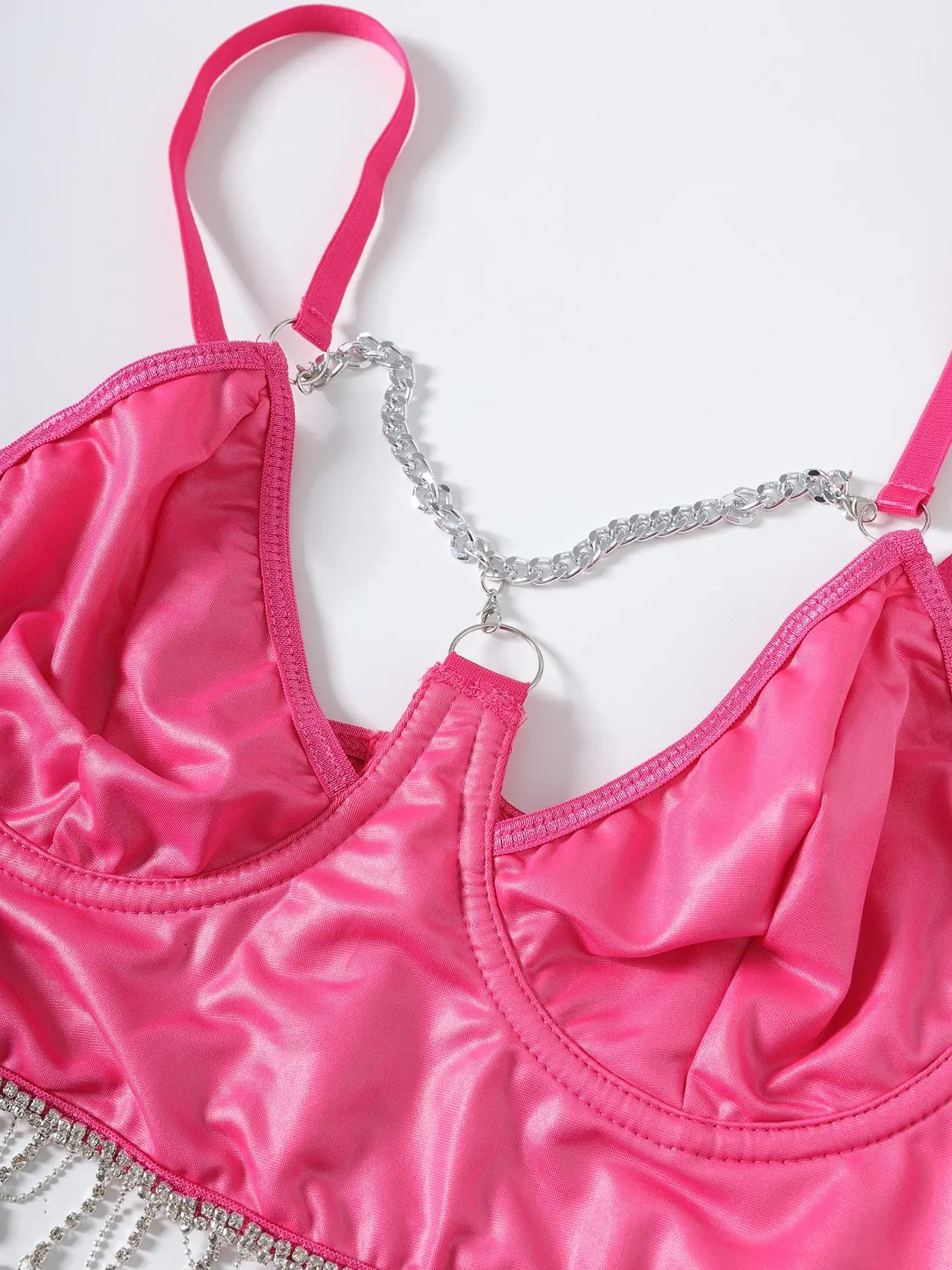 5. Women's Solid Rhinestone Tassel Charm Chain Decor Crop Camisole Top, Fashion Aesthetic Casual Spaghetti Strap Top for Daily Outdoor Wear, Women's Top For All Seasons