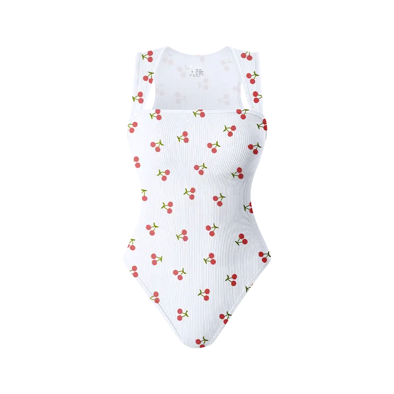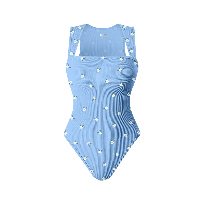 OYV Printed pattern Women's Ribbed Bodysuit-Sexy Square Neck Sleeveless Tank Top Design-Stretchy, Soft Womenswear Underwear Lady Comfort