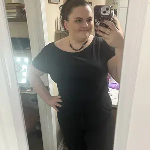 Love this romper/jumpsuit so much! If youâre curvy and want it really slouchy I would recommend sizing up one. I ordered my usual size and it fits great but isnât as off-the-shoulder as Iâve seen on others. For reference, Iâm 5â5, 225 lbs with a booty and 38DD bust and I ordered an XL.