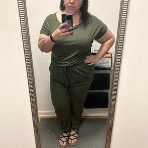 love this set đ€Itâs cute, stretchy, soft, and very good quality 10000% Itâs comfortable for traveling, lounging at home, exercising, shopping, and more. Youâll look and feel great in this set. I definitely recommend it đSize:M Height:5.7â W:165lbs