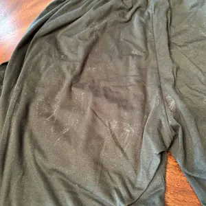 Iâm really disappointed since thereâs some kind of white film all over the green jumper I received today. Plus the button on the back of the neckline was clearly broken off and canât even find it in the bag.